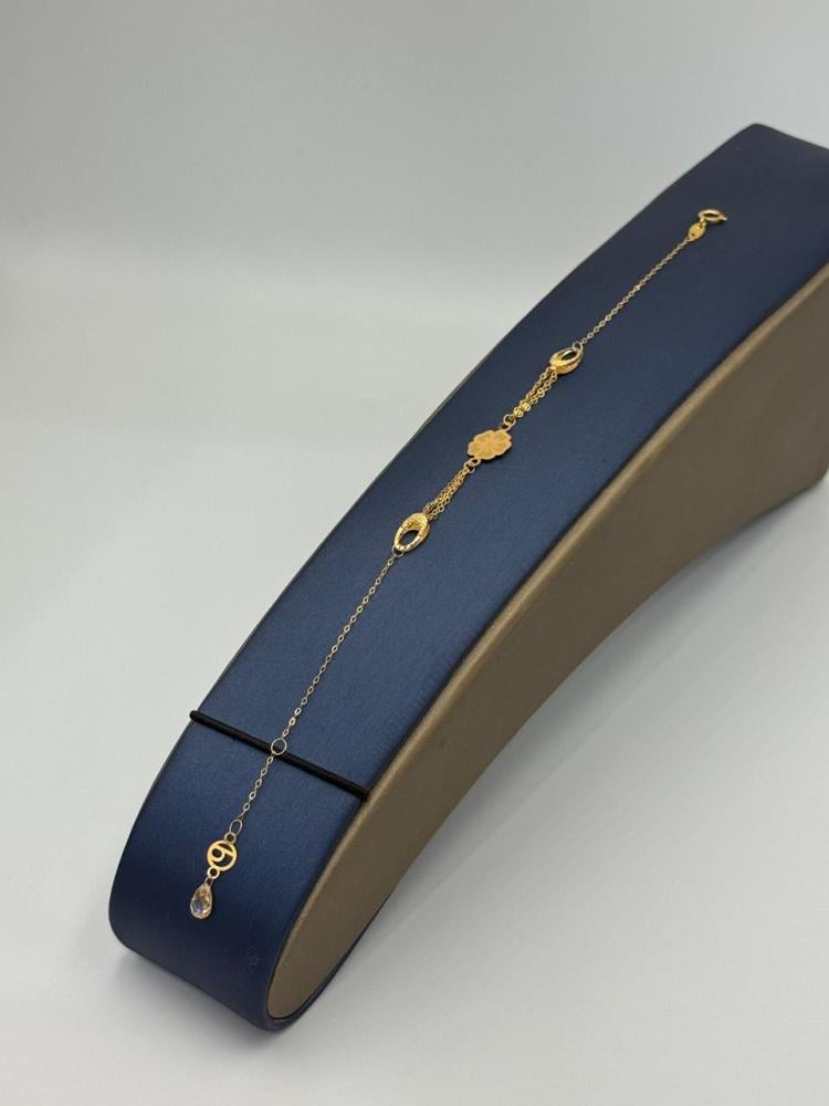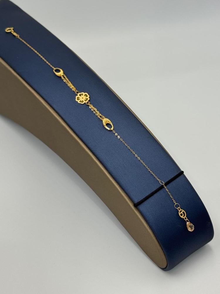 الوصف: اسوارة ذهب عيار 21 بتصميم وردة أنثوية راقية من تشكيلة أنيقة تضيف لمسة فخمة إلى معصمك. تجمع بين البساطة والرقي لتكمل إطلالتك اليومية أو في المناسبات الخاصة، بلمعان ذهب أصلي يلفت الأنظار.
