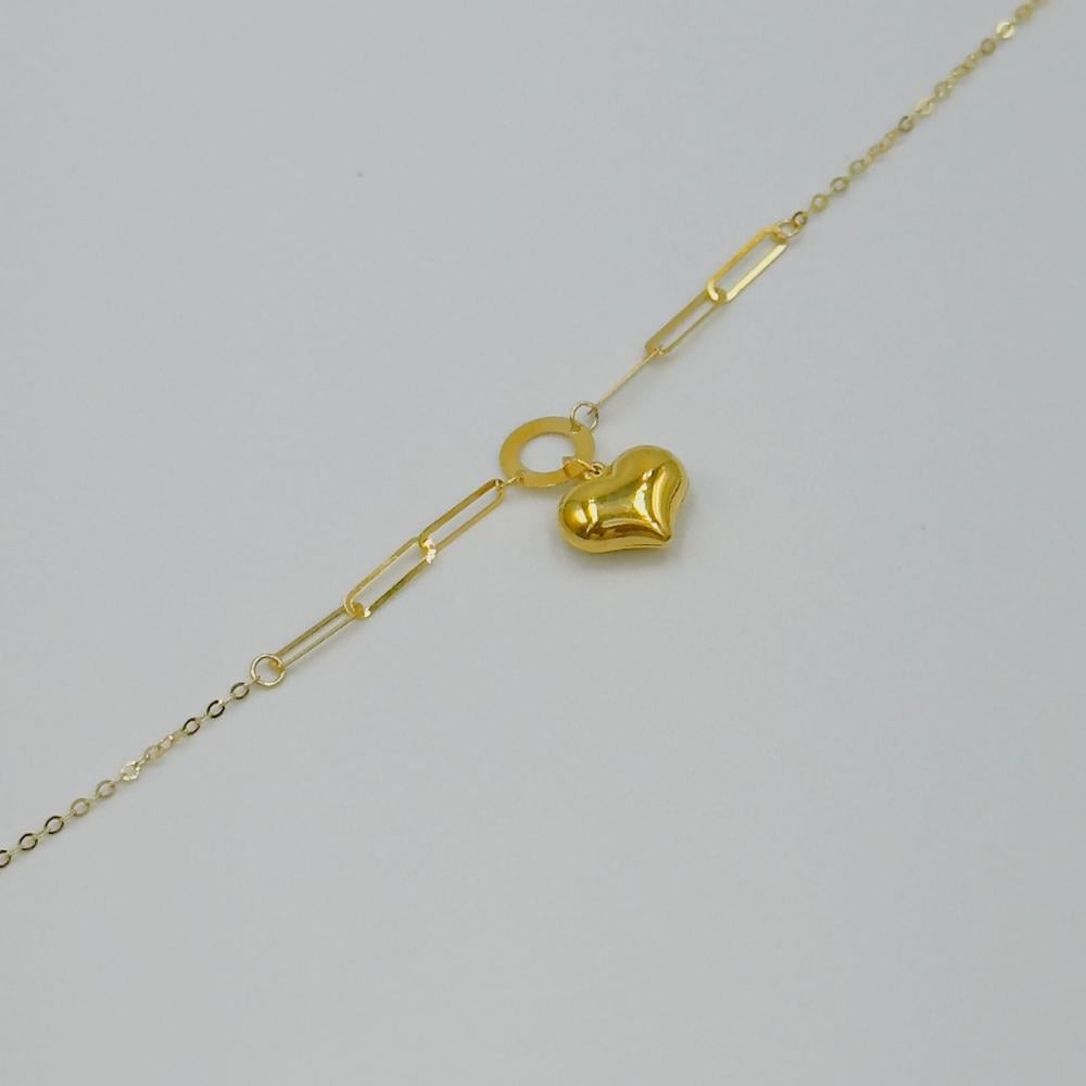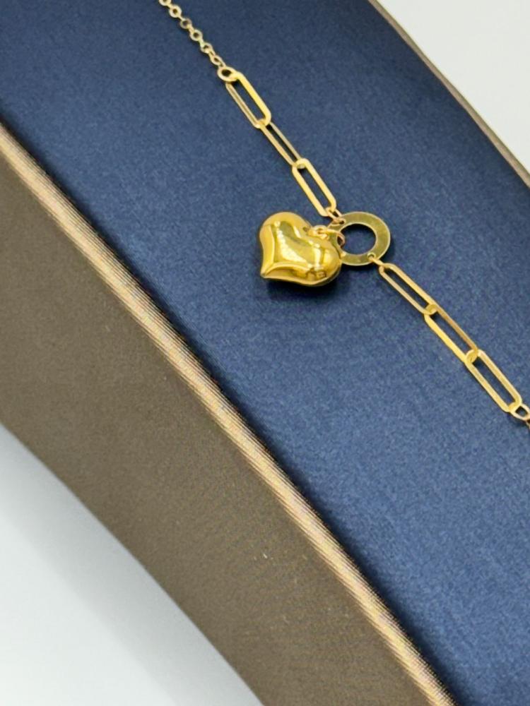 💫 الوصف: إسوارة فاخرة من ذهب عيار 18 تجمع بين رمزية القلب ولمسة تصميم البيبر كليب العصري على الجانبين، في مزيج مثالي من الرقة والأناقة الحديثة.