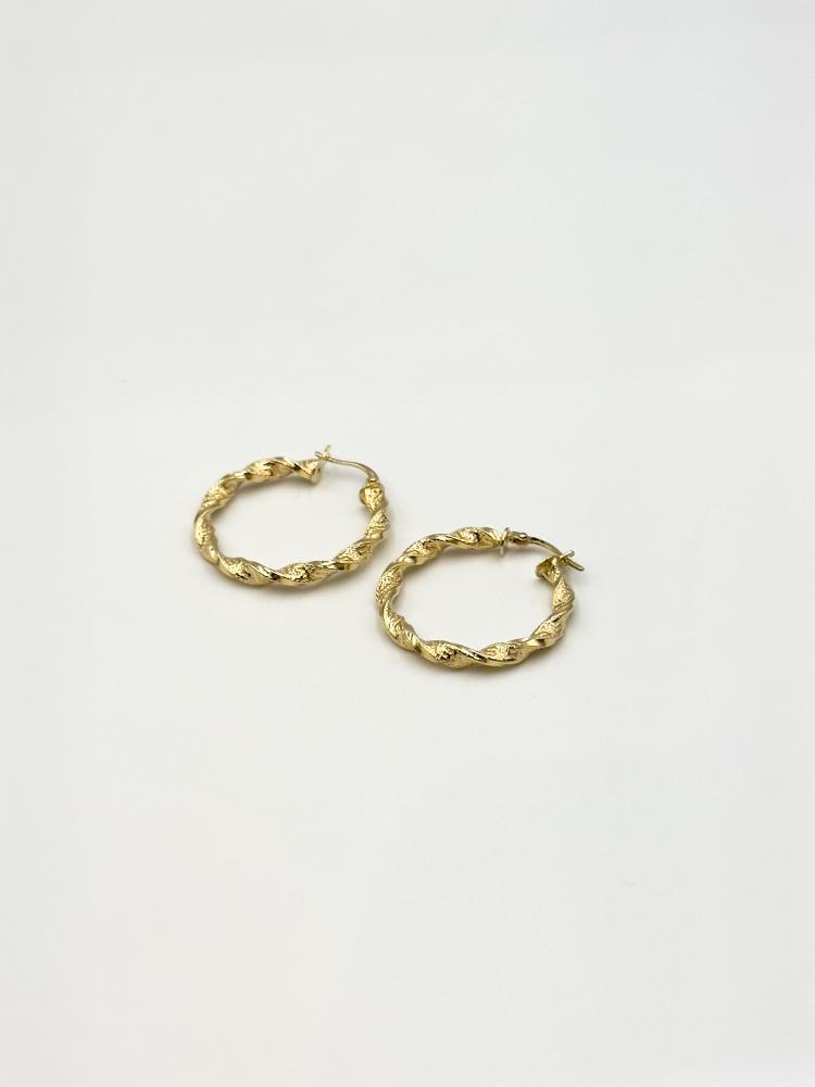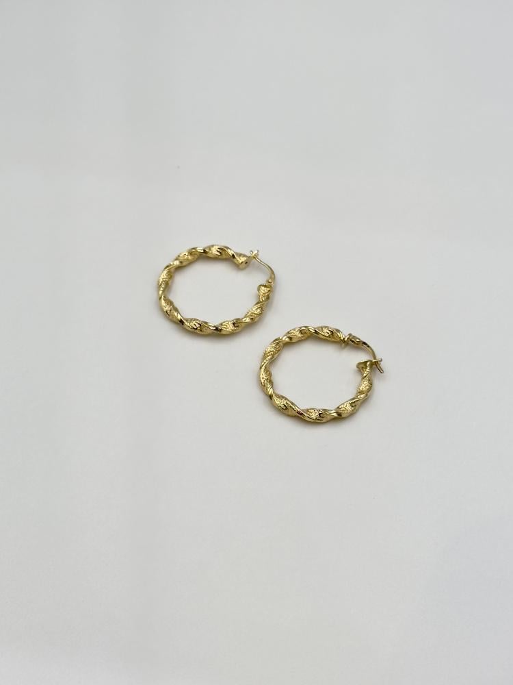 تميّزي بإطلالة أنيقة وعصرية مع هذا الحلق الراقي المصنوع من ذهب عيار 18. يتميز بتصميم ناعم بحواف منحنية ولمسات محفورة تضيف تألقاً لافتاً تحت الضوء، ليمنحك مظهراً كلاسيكياً بلمسة عصرية.