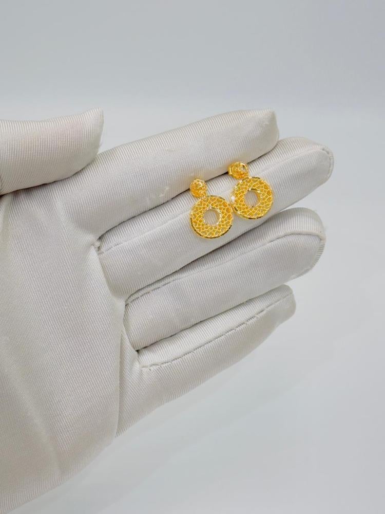 أضيفي لمسة من الأناقة العصرية مع هذا الحلق الدائري المفتوح من الذهب عيار 21. تصميمه الفريد يمنح إطلالة متألقة ورقيقة في آن واحد، مناسب لكل المناسبات ولإطلالة يومية مميزة. خفيف الوزن ومريح للارتداء طوال اليوم، ويضفي لمسة فاخرة على كل إطلالة.