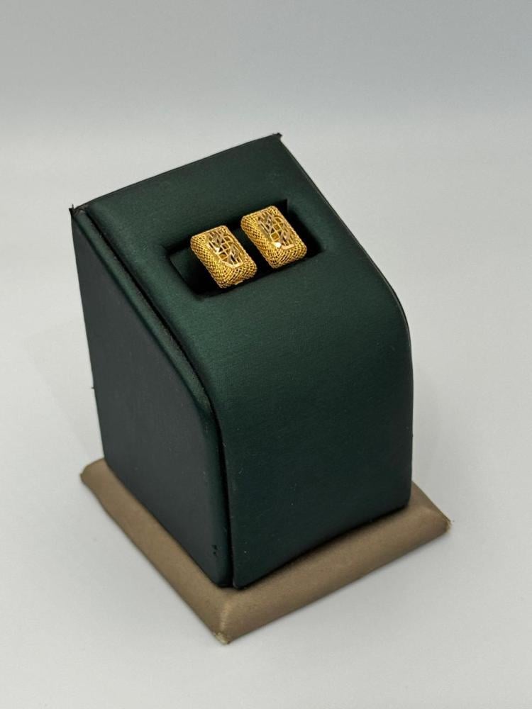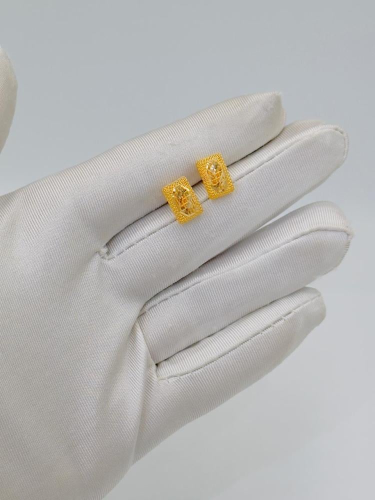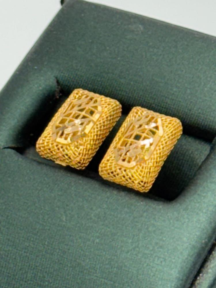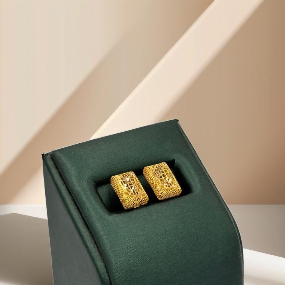 الوصف: حلق ذهب عيار 21 بتصميم مستطيل أنيق يجمع بين العصرية والبساطة. قطعة تضيف لمسة فخمة إلى إطلالتك اليومية وتبرز ذوقك الراقي في اختيار التفاصيل الذهبية المميزة.