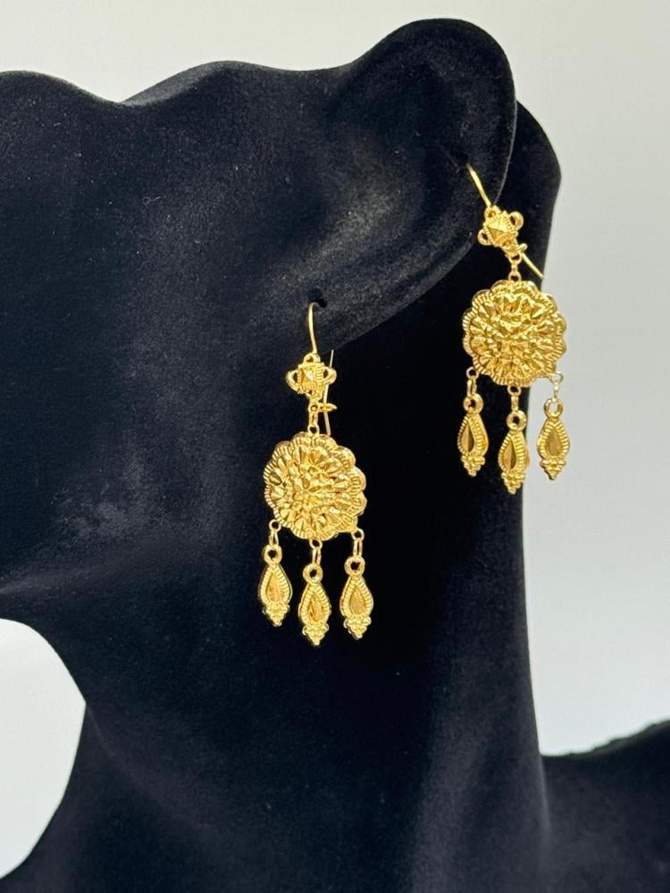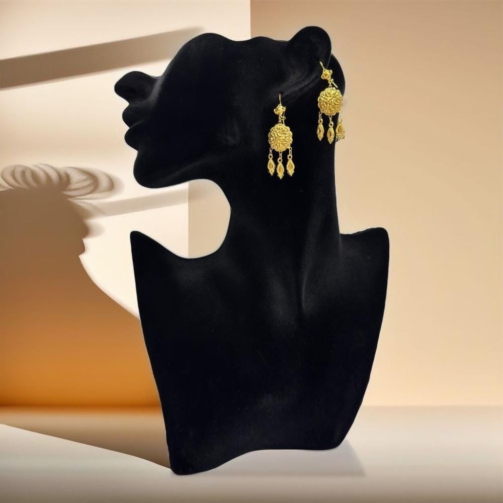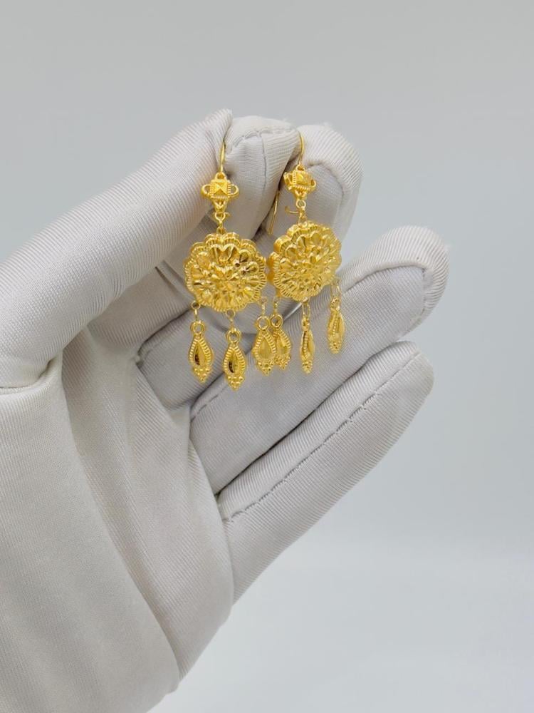 ارتقِ بأسلوبك مع حلق كرسي جابر المصنوع من دهب عيار 21 الفاخر. يتميز بتصميمه الكلاسيكي والأنيق، ليمنحك لمسة من الفخامة في كل مناسبة. خفيف الوزن وبارز في نفس الوقت، يعكس الضوء بشكل رائع ليبرز جمالك الطبيعي.