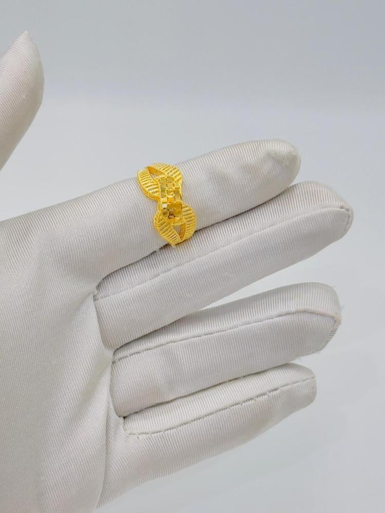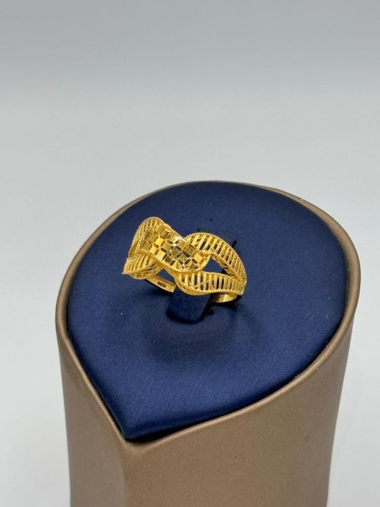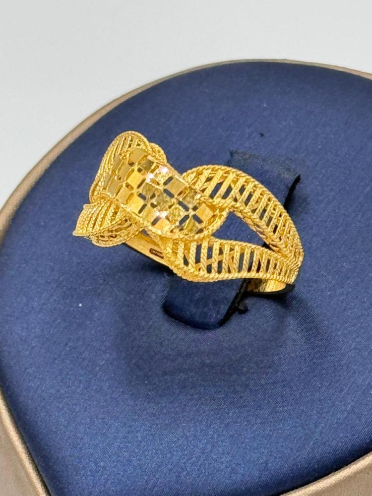 خاتم فاخر بتصميم هندسي أنيق يجمع بين الرقي والعراقة. مصنوع من ذهب عيار 18 بوزن 2.06 جرام، ويتميز بزخارف دقيقة ونقوش لامعة تضيف لمسة من الفخامة والجاذبية. قابل لتعديل المقاس ليناسب راحتك تمامًا.