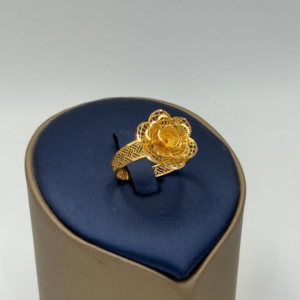الوصف: خاتم وردة من الذهب عيار 21 يزن 2.49 جرام، بتصميم أنثوي ناعم يرمز للرقة والجمال. يتميز بإمكانية تعديل المقاس لتناسب مثالي ومريح. قطعة ذهبية أنيقة تضيف لمسة فخامة خفيفة إلى إطلالتك اليومية أو في المناسبات الخاصة.