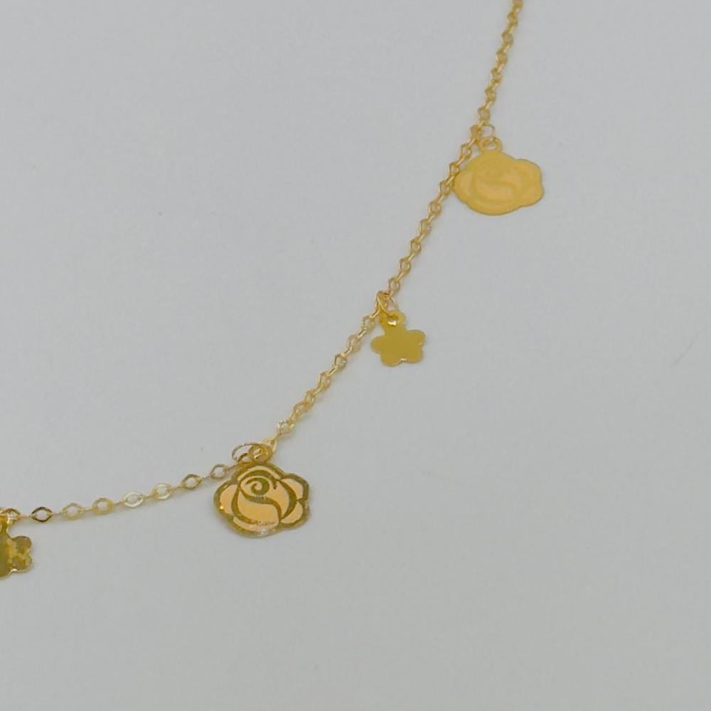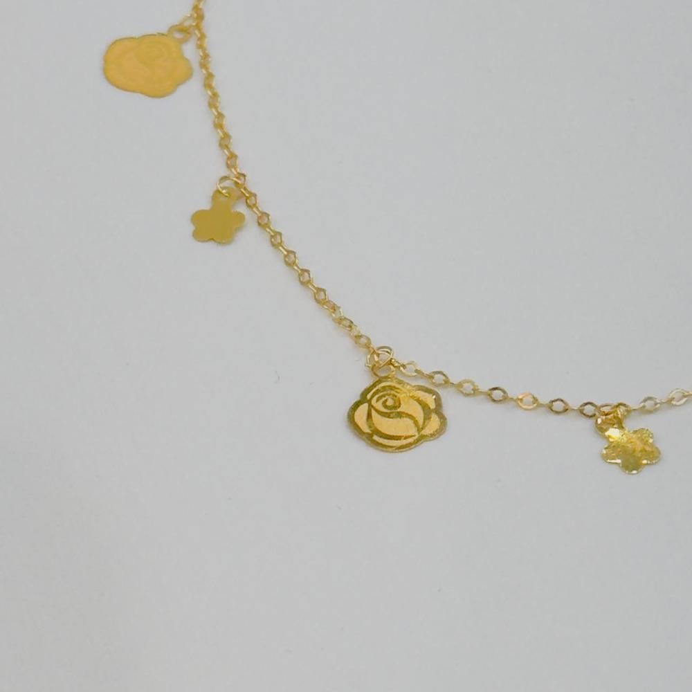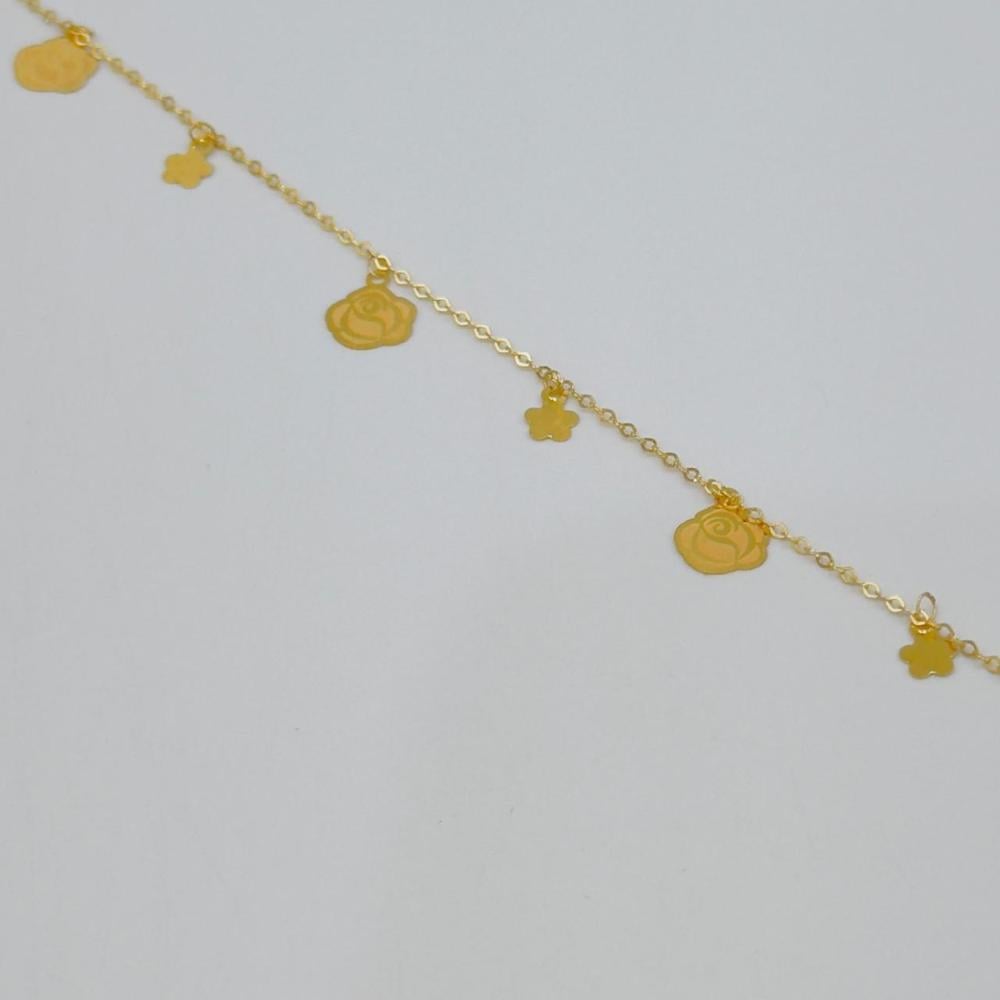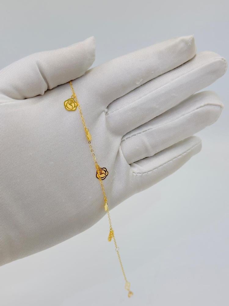 الوصف: استمتعي بأناقة لا مثيل لها مع خلخال الوردة الذهبية المصنوع من ذهب عيار 21. تصميمه الفاخر على شكل وردة يضفي لمسة أنثوية رومانسية على إطلالتك، بينما يضمن الوزن المثالي 1.36 جرام وطوله 25 سم (10 بوصة) الراحة والمتانة في الوقت نفسه.