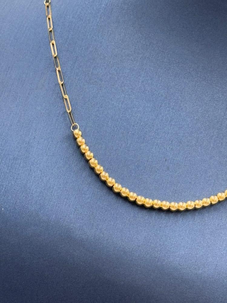 إذا كنت تبحثين عن قطعة مجوهرات تجمع بين البساطة والأناقة، فإن عقد الكرات مع سلسال بيبر كليب عيار 18 هو الخيار المثالي لك. تصميمه العصري يجعل منه إضافة رائعة لإطلالتك اليومية أو لمناسباتك الخاصة.
