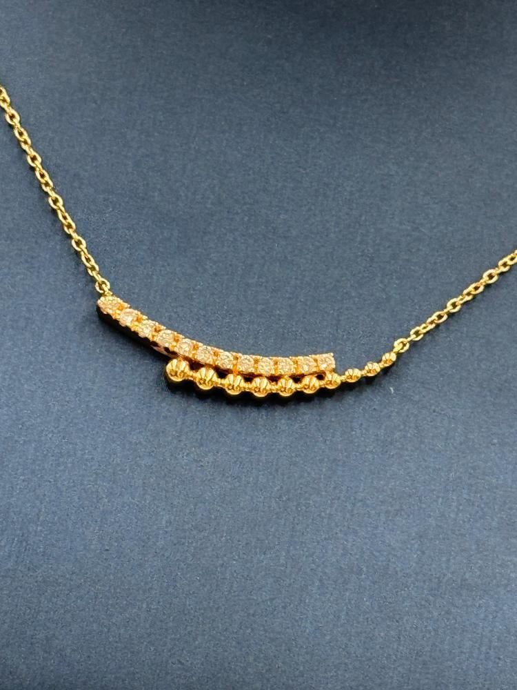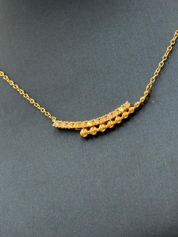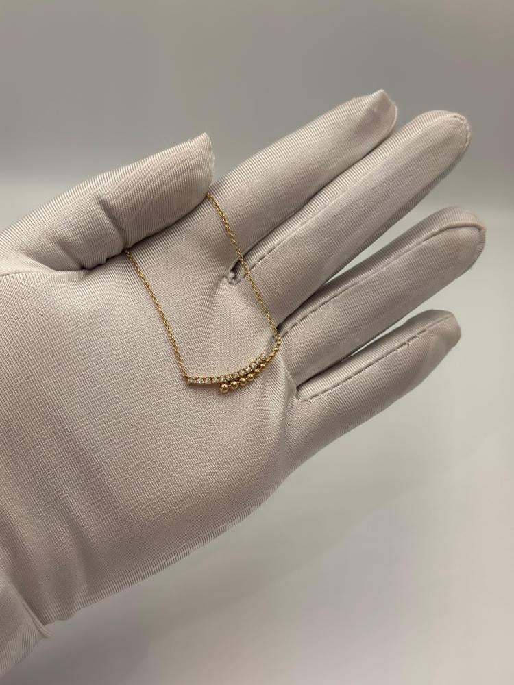 تألقي بفخامة لا تضاهى مع سلسال وتعليقة من الذهب الأصفر عيار 18 مرصعة بـ ألماس فاخر بوزن 0.10 قيراط. تصميم أنثوي ناعم يناسب الإطلالة اليومية والمناسبات الخاصة، مع إمكانية تعديل الطول بين 40 إلى 44 سم ليناسب جميع الأذواق. قطعة تجمع بين الرقي والبساطة بلمسة فاخرة.
