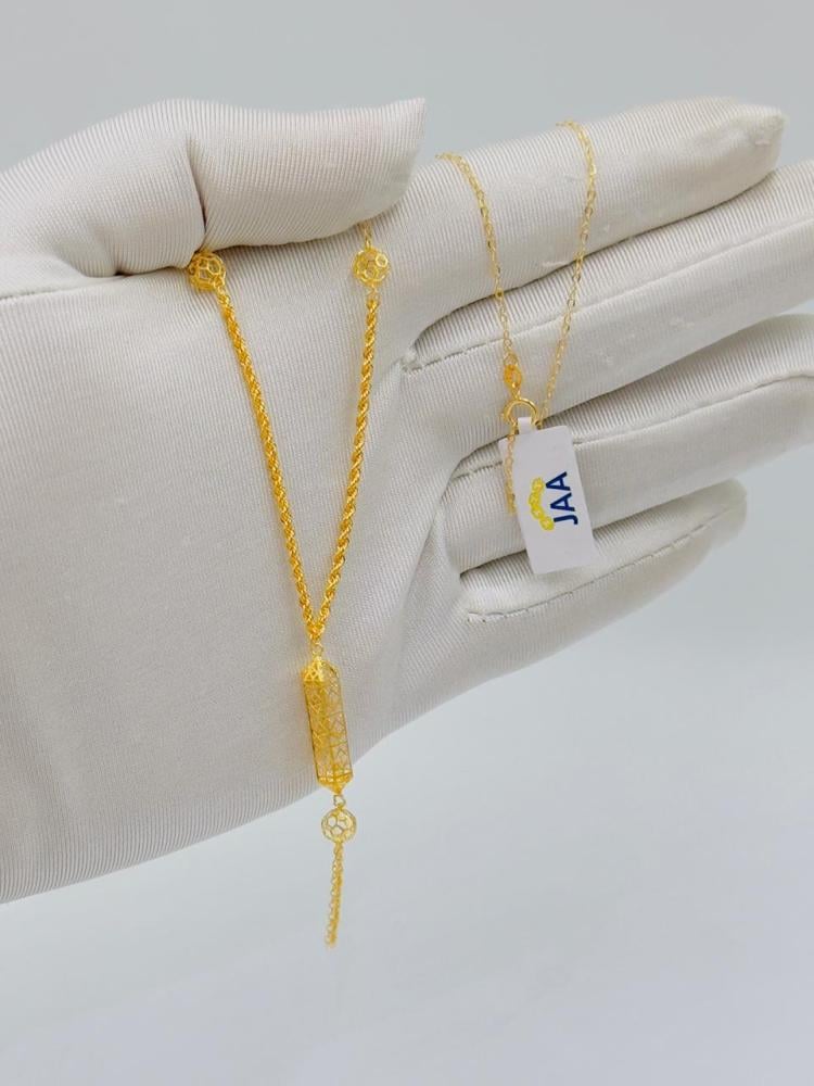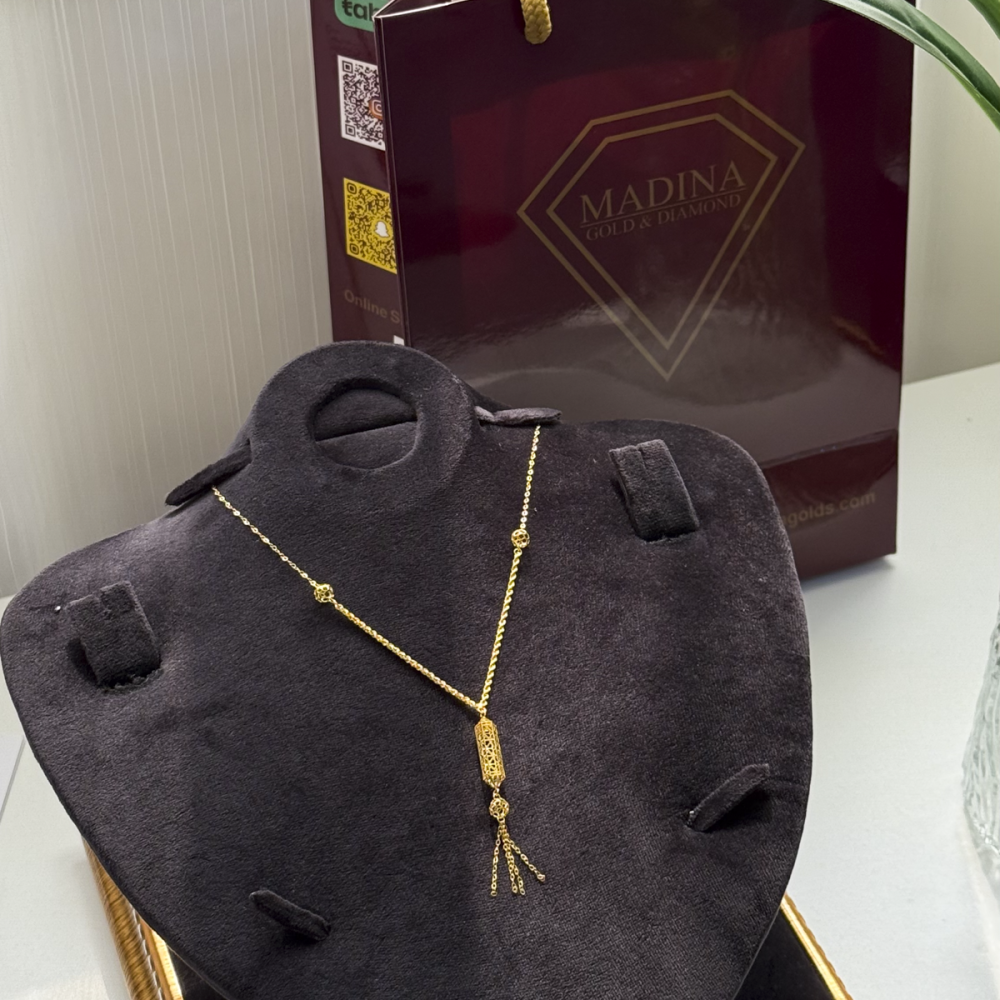 🔹 الوصف: عقد ذهب الهبة عيار 21 💛 بتصميم فاخر يناسب جميع المناسبات، بوزن يتراوح بين 1.93 إلى 2 جرام وطول 18 بوصة – 44 سم. يضفي العقد لمسة من الرقي والأناقة على إطلالتك اليومية أو المسائية، مع نقاء وجودة الذهب الأصلي لضمان الاستثمار والتميز.