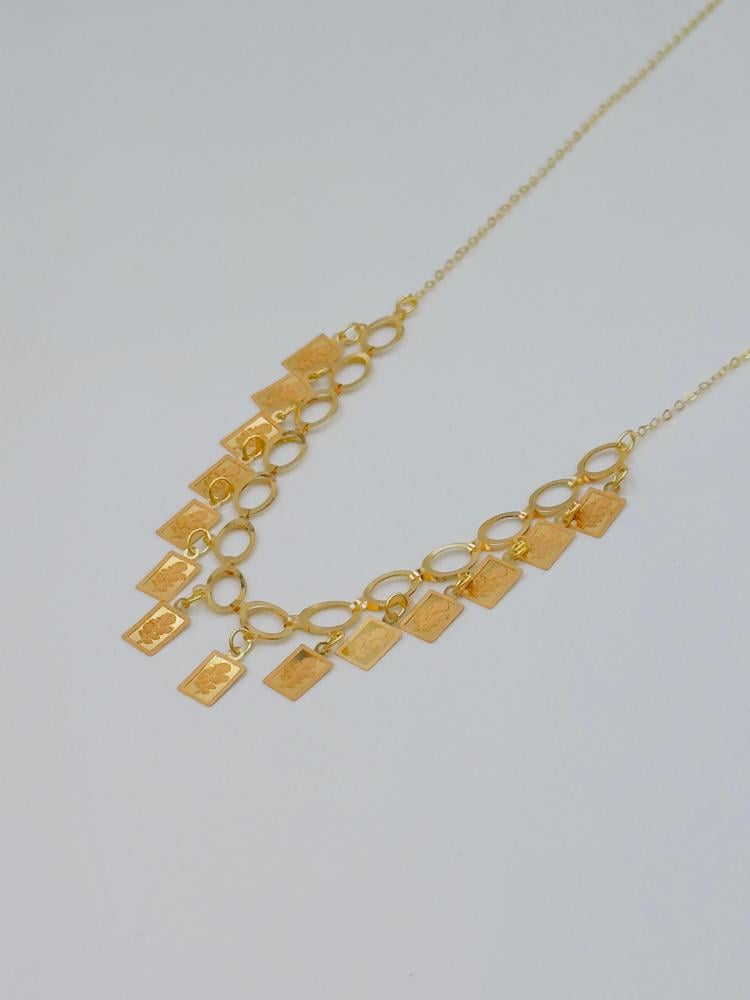 - التصميم: عقد سبايك – أطراف مدببة على سلسلة ذهبية رفيعة