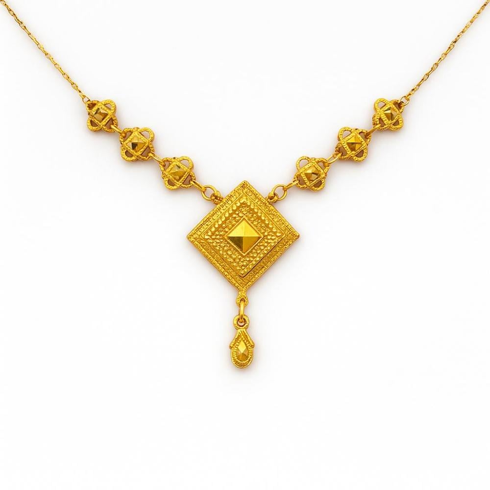 🟡 وصف المنتج: عقد ذهب عيار 21 – تصميم هندسي فاخر