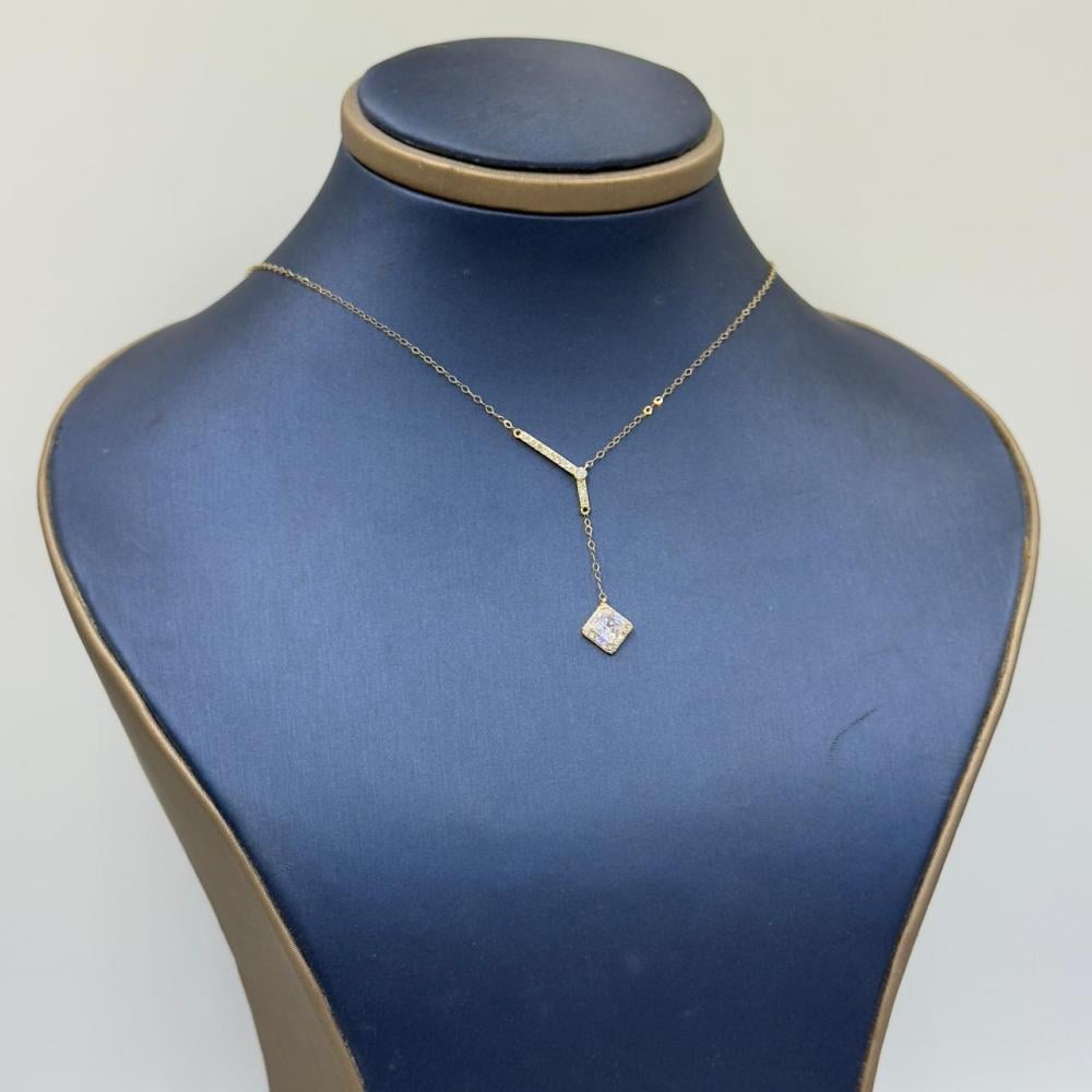 استمتعي بجمال فريد مع هذا العقد الرائع المصنوع من ذهب عيار 18، مزين بفص أبيض يأسر الأنظار. تصميمه الأنيق يناسب جميع المناسبات ويضيف لمسة من الفخامة لكل إطلالة.
