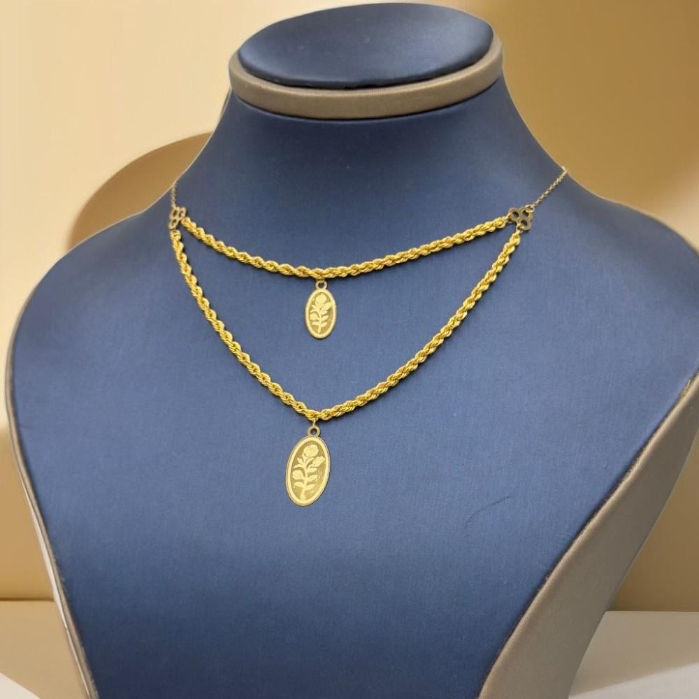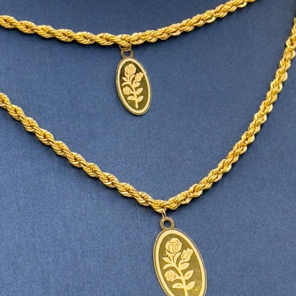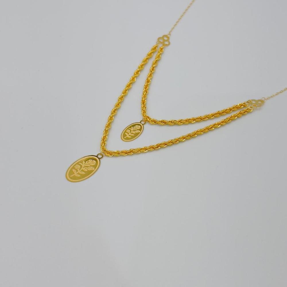 الوصف: تألقي بإطلالة تجمع الجرأة والأناقة مع عقد سبايك دورين السبيكة البيضاوي ذهب عيار 21 بوزن 2.45 جرام وطول 16 بوصة (44 سم).