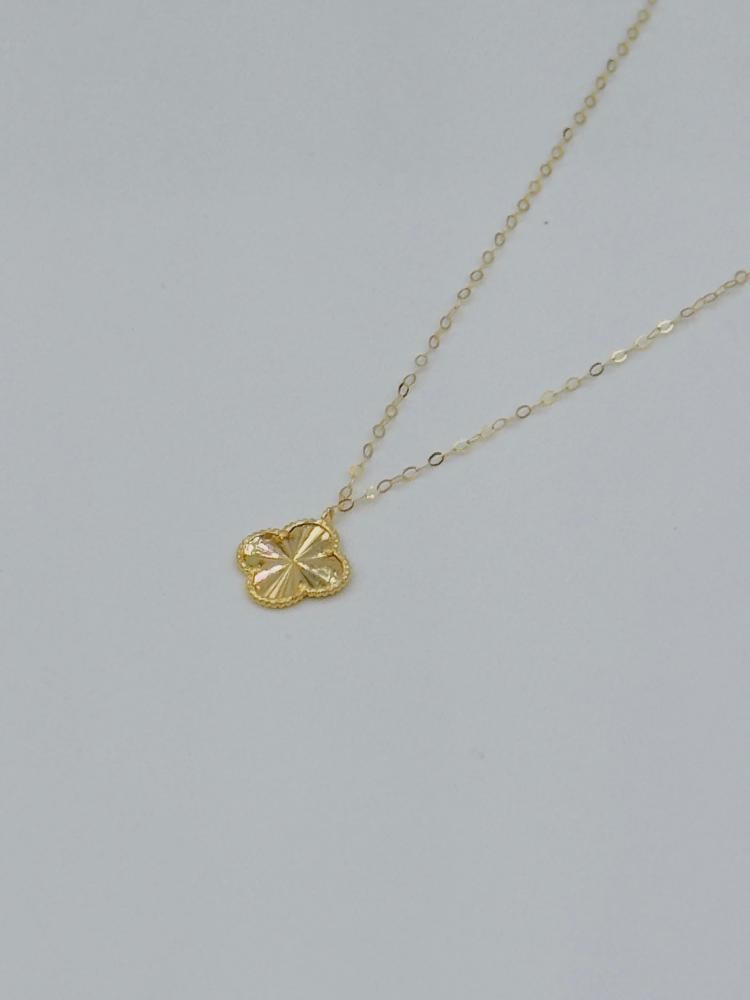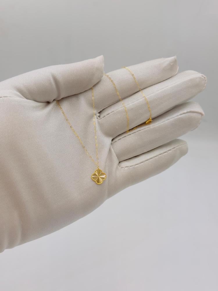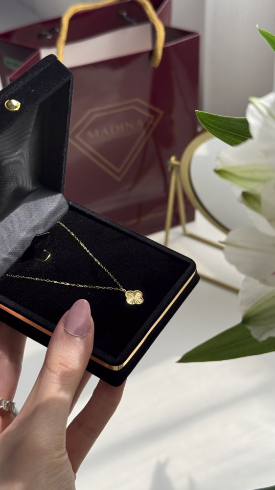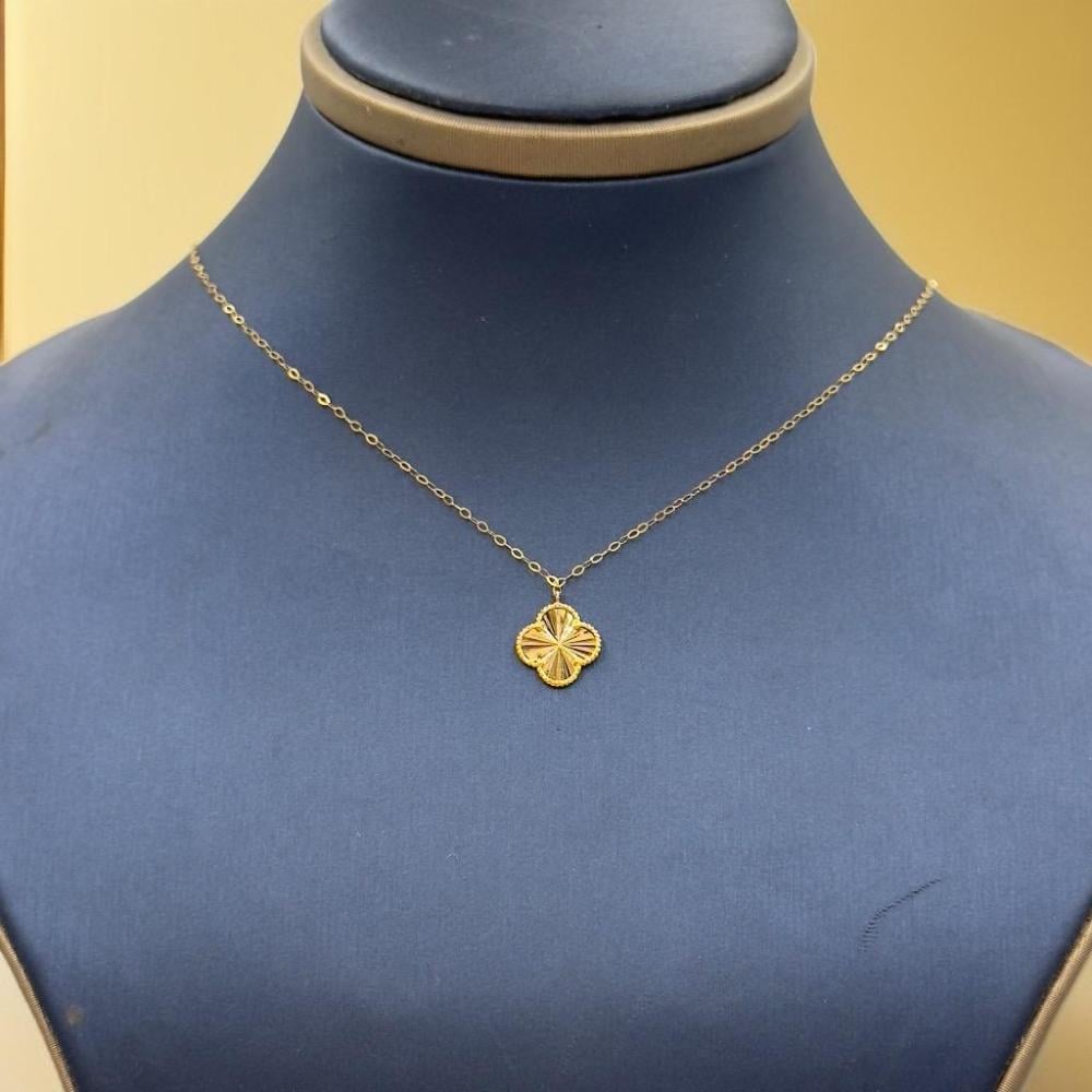 عقد فان كليف ذهب عيار 21 – لمسة فاخرة بتصميم ناعمأبرزي أناقتك بخفة مع هذا العقد الذهبي المميز المستوحى من تصاميم دار المجوهرات الفرنسية الشهيرة "Van Cleef". يتميز بتعليقة ناعمة بشكل الزهرة الكلاسيكية، مصنوعة من ذهب أصفر عيار 21 بوزن 0.70 جرام وطول 40 سم (16 بوصة). قطعة أنثوية ناعمة تضيف لمسة من الرقي إلى كل إطلالة.