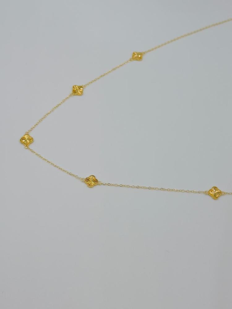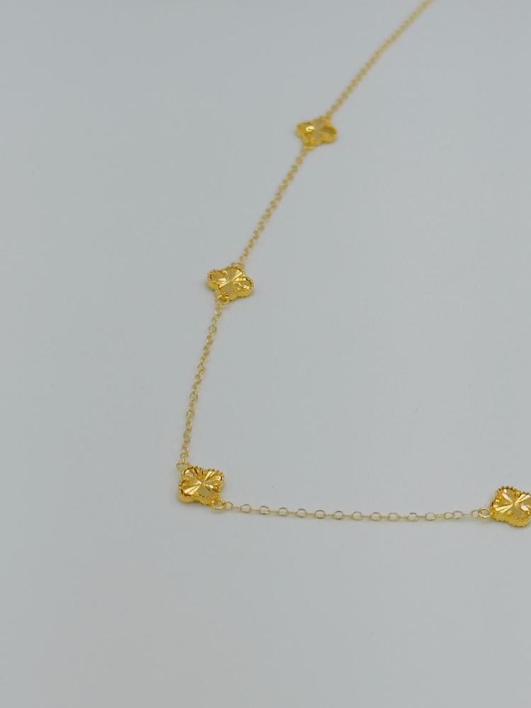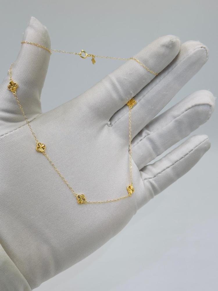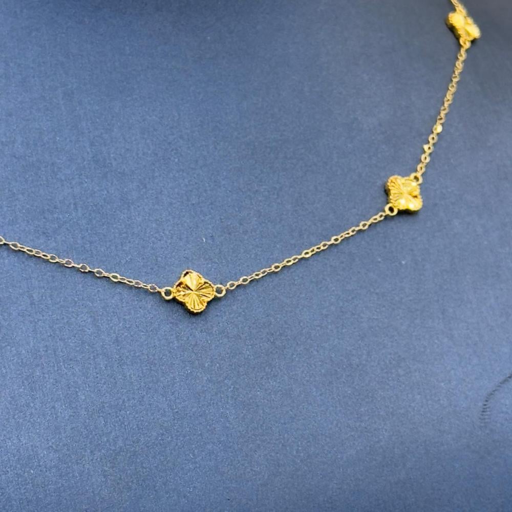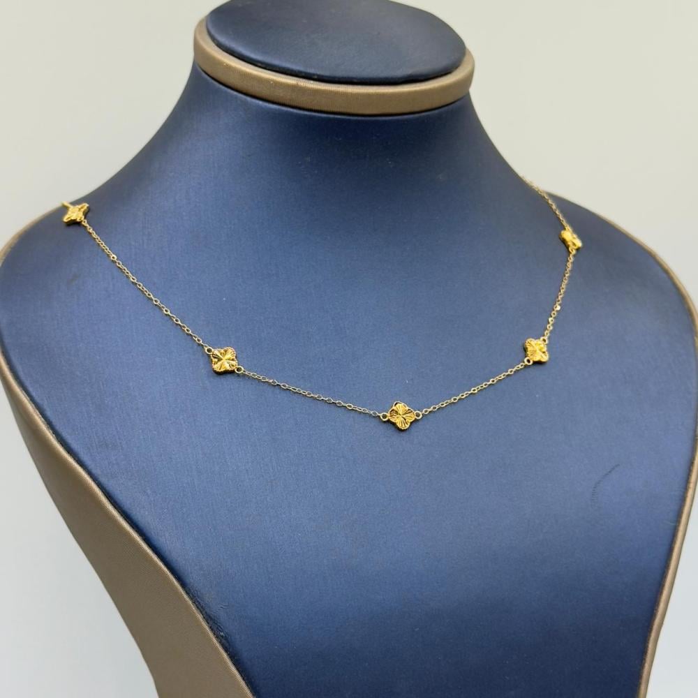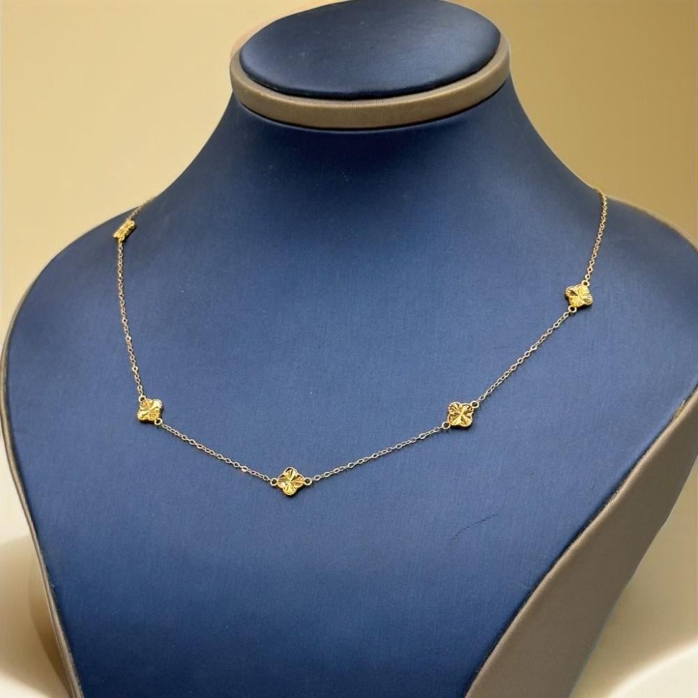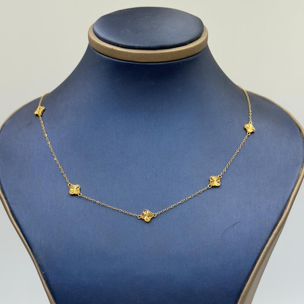 الوصف:عقد فانكليف راقٍ بتصميم خمس وحدات مستوحاة من الأناقة الكلاسيكية، مصنوع من ذهب نقي عيار 21، ليعكس جمال التفاصيل وبساطة الفخامة. قطعة تضيف لمسة نعومة مميزة وتناسب الإطلالات اليومية والمناسبات الراقية.