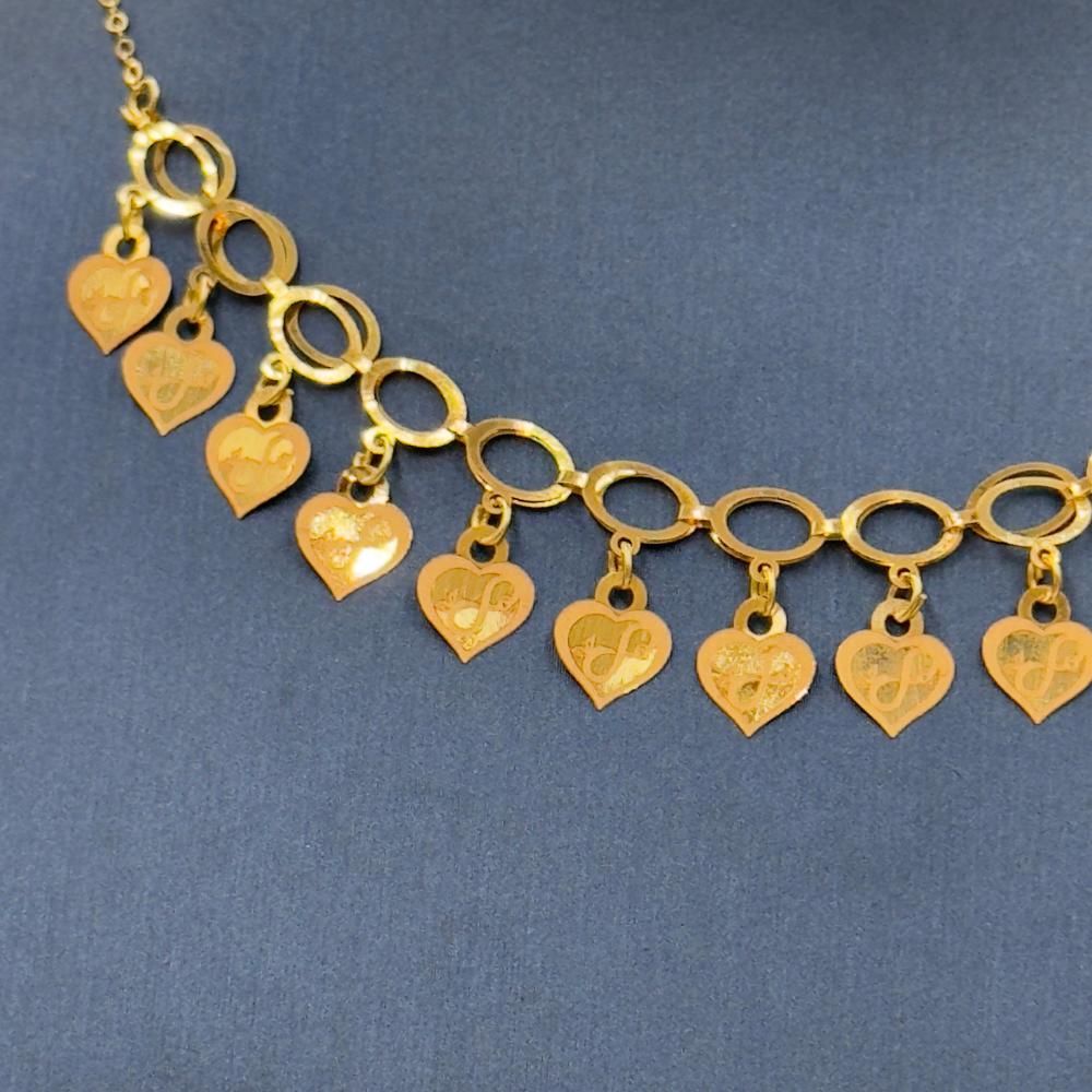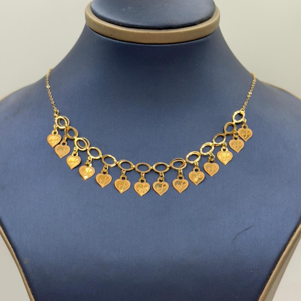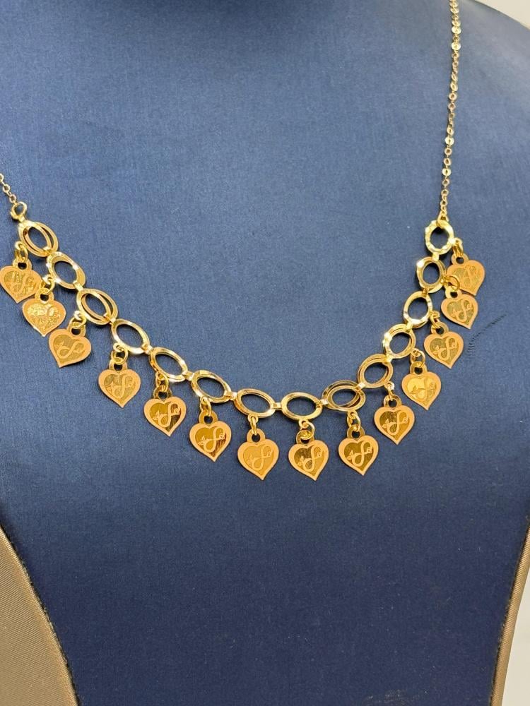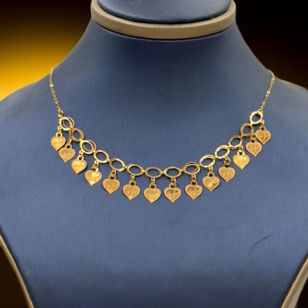عقد قلب ذهب عيار 21 – رقة في التفاصيل وأناقة لا تُضاهىعبّري عن أنوثتك بأسلوب ناعم ورومانسي مع عقد القلب المصنوع من ذهب عيار 21 النقي. يزن 2.02 جرام بطول مثالي يبلغ 40 سم (16 بوصة)، ويتميز بتصميم دقيق من حلقات بيضاوية متصلة تتدلّى منها قلوب ذهبية منقوشة بنقوش فنية ناعمة، تضفي عليه لمسة حب وتميّز.