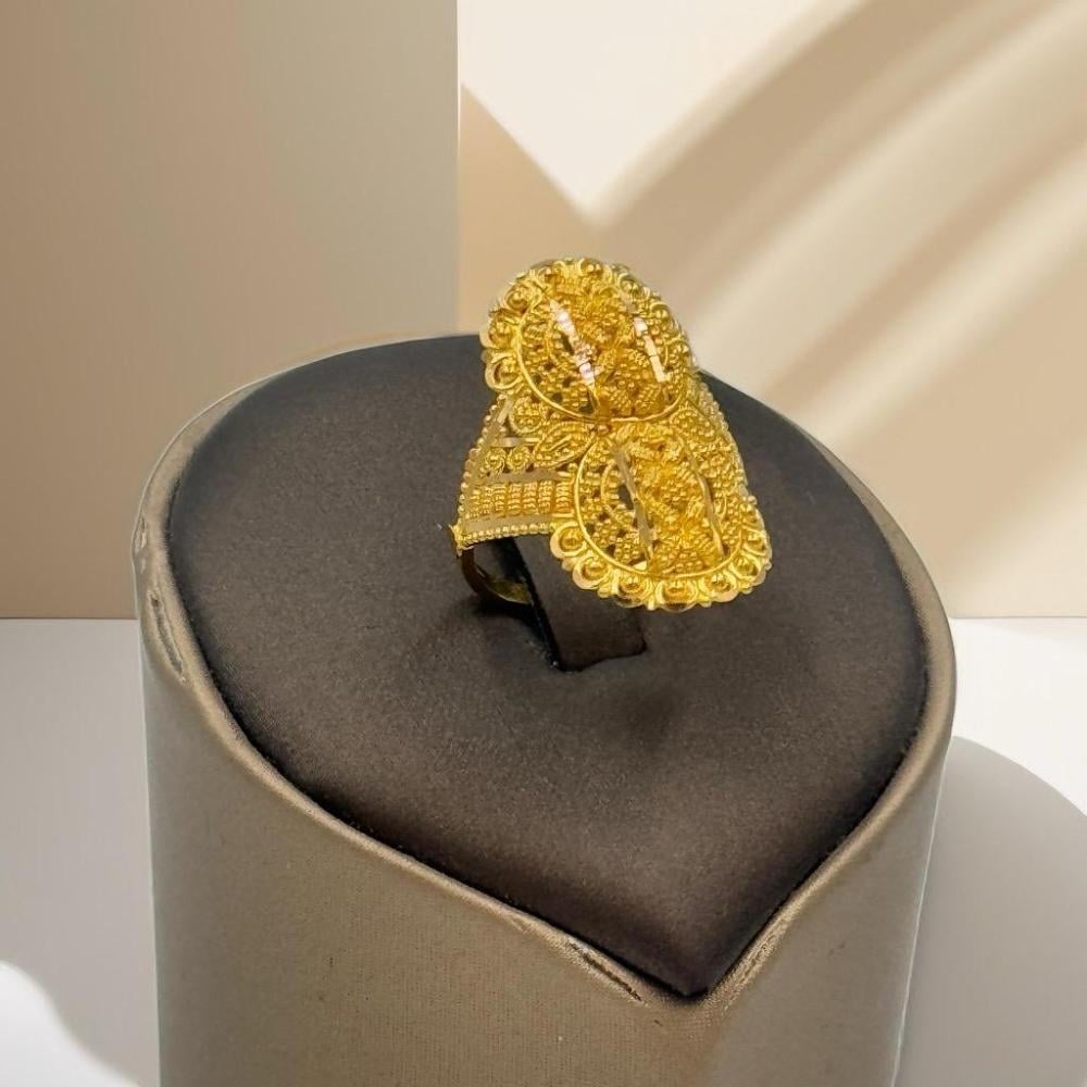 اقتني هذا الخاتم الذهبي عيار 22 اليوم وأضيفي إلى مجموعتك قطعة مميزة تعبر عن الأناقة والجودة. مثالي لمحبي التصاميم الهندية وعشاق الذهب الفاخر.