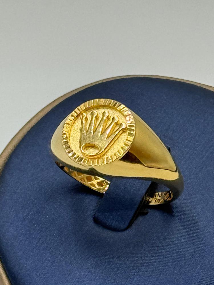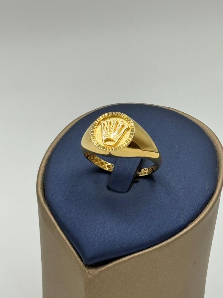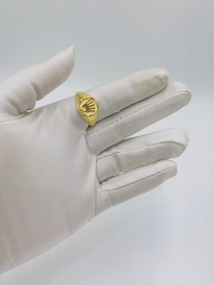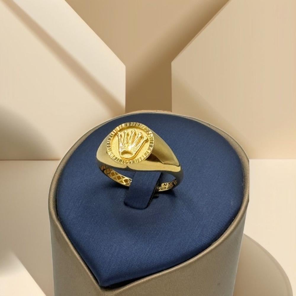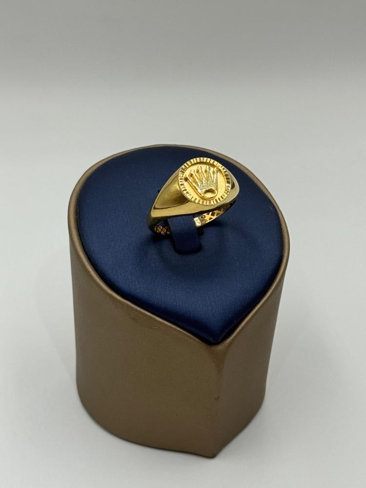 خاتم ذهب عيار 18 بتصميم أنيق مستوحى من لمسة رولاكس المميزة، يجمع بين الفخامة والذوق الرفيع. قطعة فاخرة تضيف لإطلالتك أسلوباً راقياً يناسب المناسبات الخاصة والاستخدام اليومي على حد سواء.