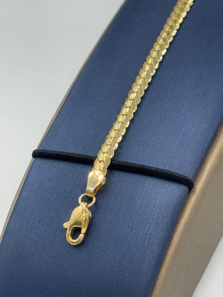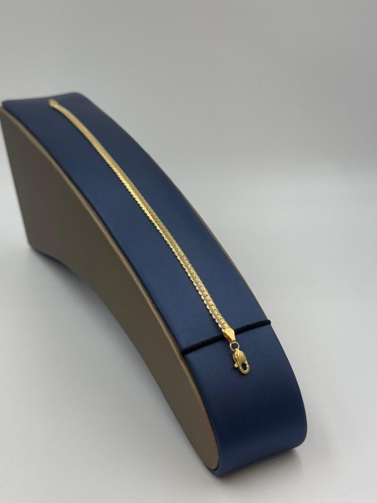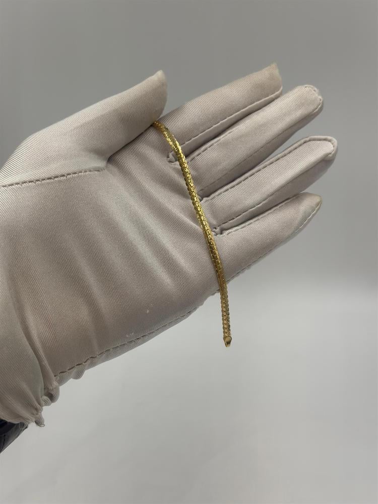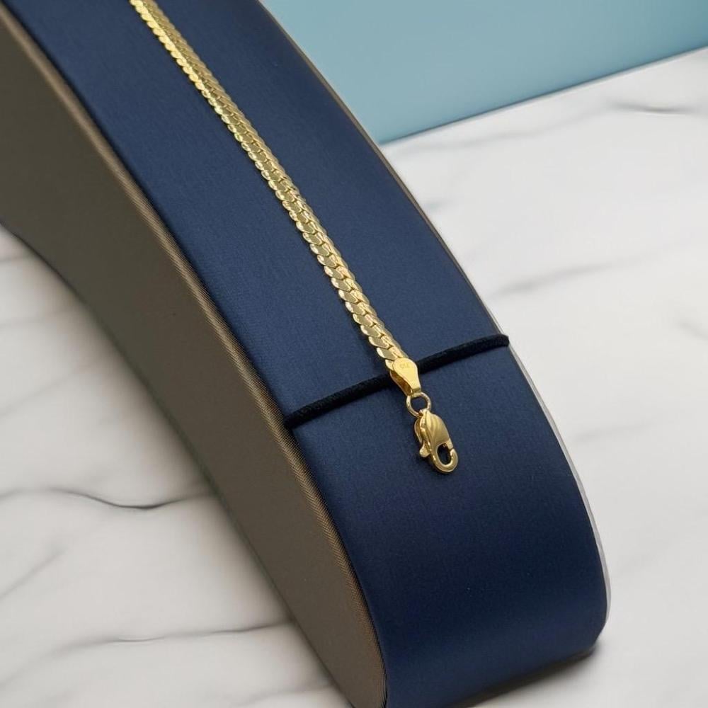 أضف لمسة من الجرأة والأناقة إلى إطلالتك مع إسوارة ذهب عيار 18 بتصميم الثعبان، رمز القوة والحكمة. بوزن 2.65 جرام وطول 7.6 بوصة (19.25 سم)، تمنحك هذه الإسوارة مظهرًا عصريًا أنيقًا مع لمسة فاخرة تناسب جميع المناسبات.