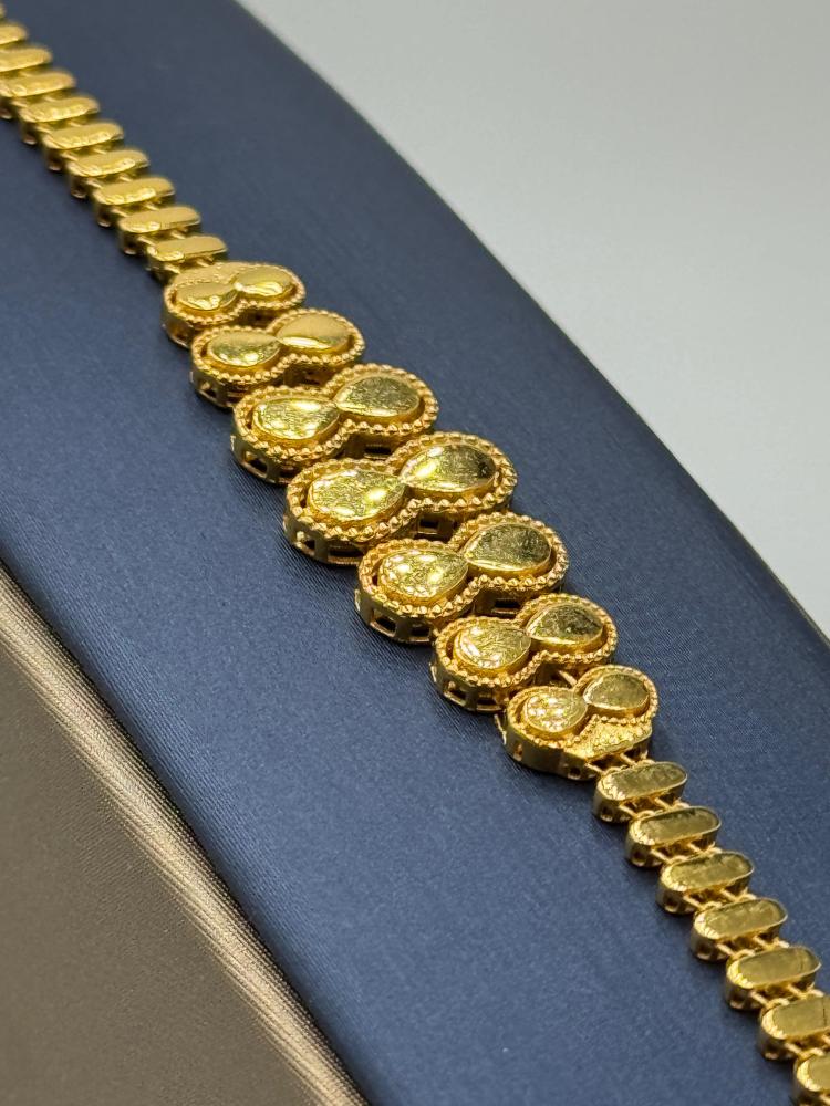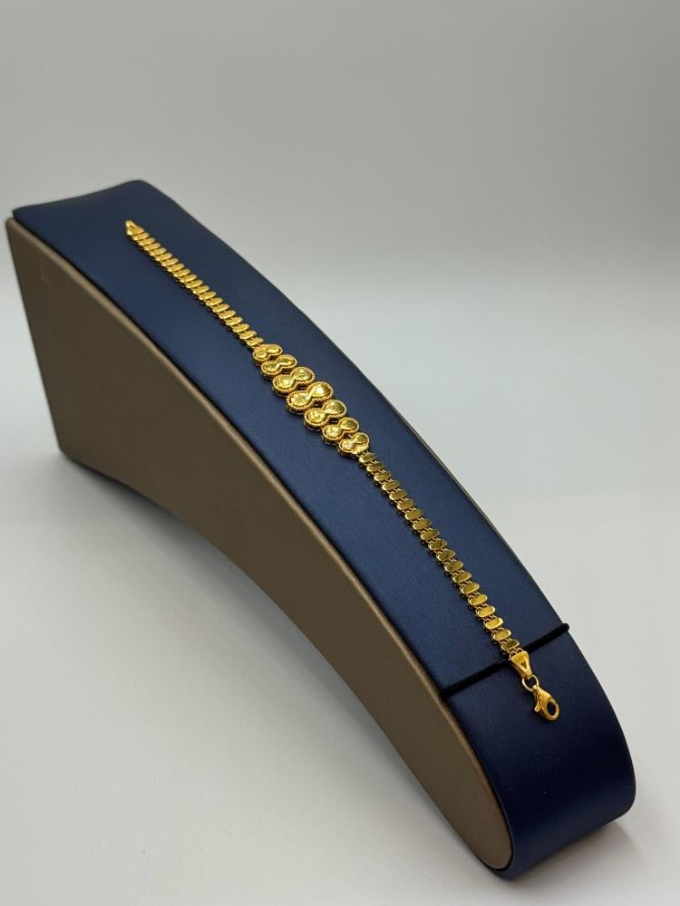 اسوارة ذهب راقية من عيار 21 بتصميم فخم يبرز جمال الذهب الأصفر. تأتي بوزن 10.55 جرام وطول 7.5 بوصة (19 سم)، لتمنحك إطلالة فاخرة تناسب جميع المناسبات وتضفي لمسة من الفخامة على معصمك.