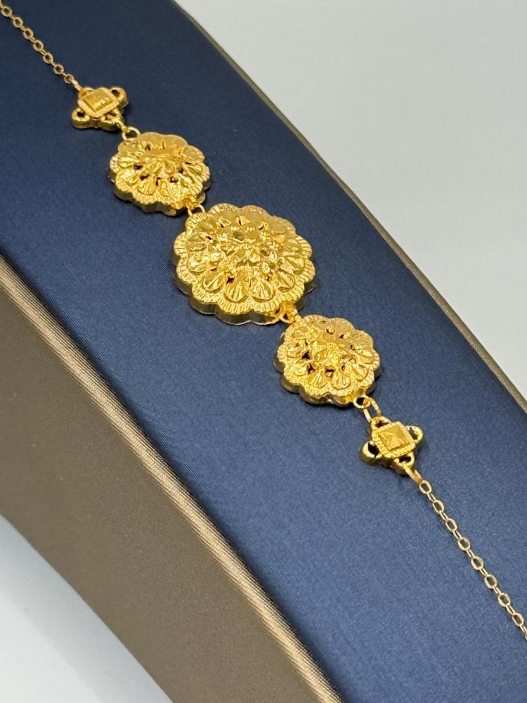 صف المنتج:أضيفي لمسة من الأناقة الكلاسيكية مع إسوارة كرسي جابر المصنوعة من ذهب عيار 21. تصميمها الفاخر يجمع بين التراث والجمال العصري لتكون قطعة مميزة تزين معصمك في كل مناسبة. خفيفة الوزن وبلمعة راقية تضيف تألقاً فريداً لإطلالتك اليومية أو المسائية.