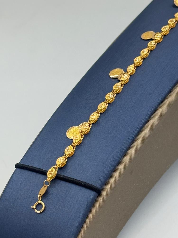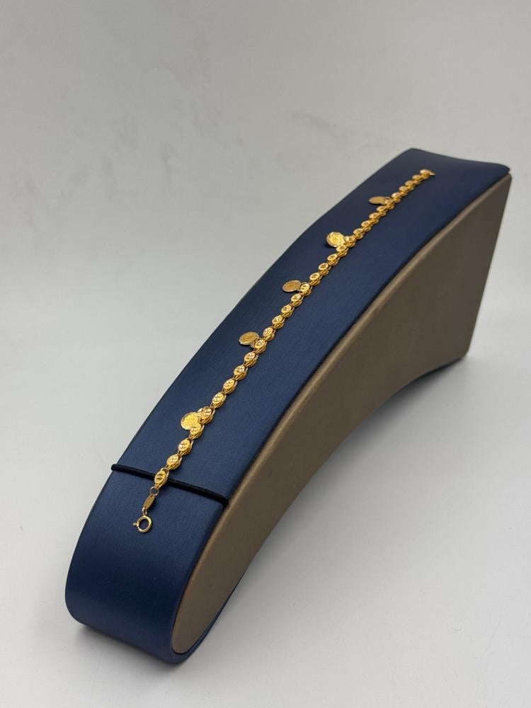 - التصميم: اسوارة حلبي مزينة بتعليقة جنيهات ذهبية