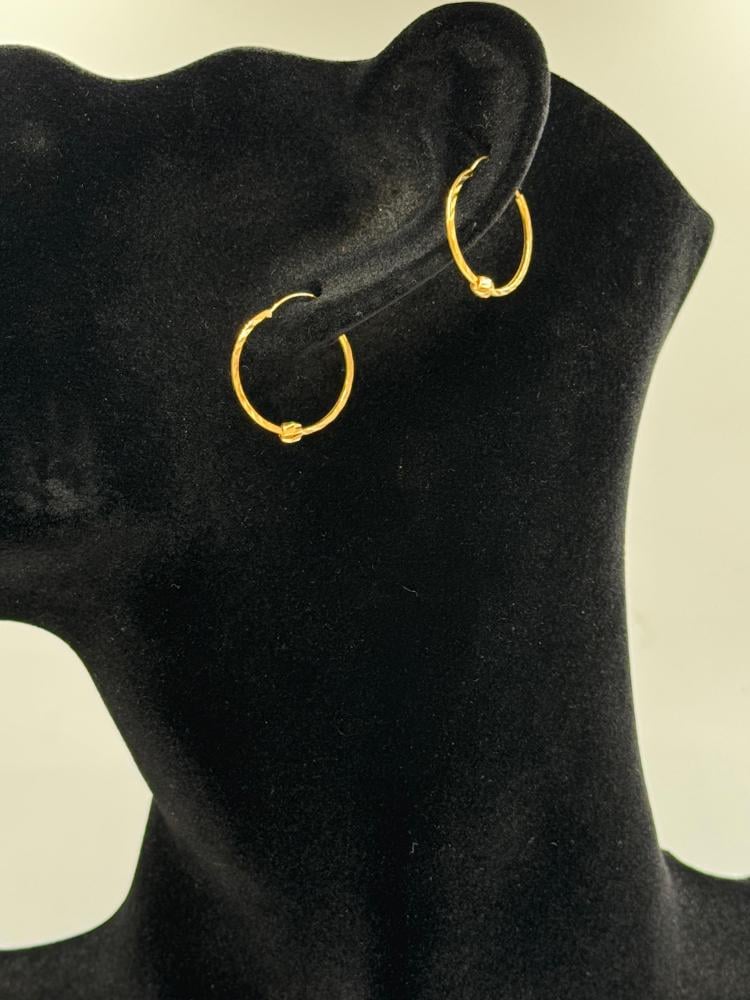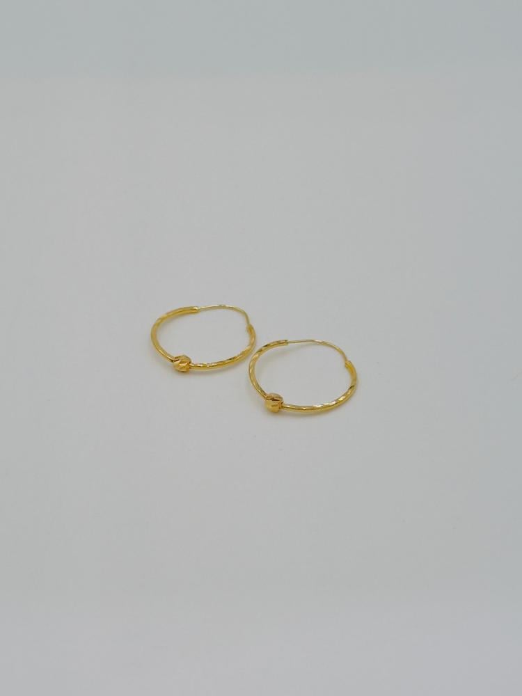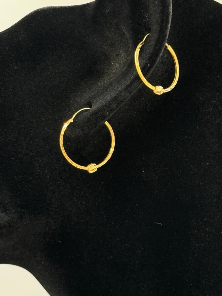 📝 الوصف: أضيفي لمسة من التميز إلى إطلالتك مع هذا الحلق الدائري المميز بكرة صغيرة تتوسط التصميم، مصنوع من ذهب أصفر نقي عيار 21 بوزن 0.84 جرام. مزيج مثالي بين البساطة والتفرد، يناسب جميع الأوقات ويكمل أناقتك اليومية.