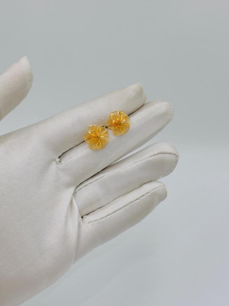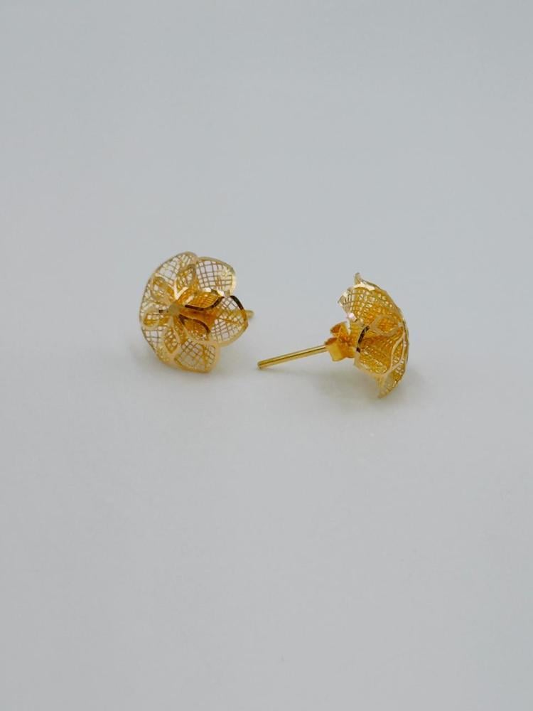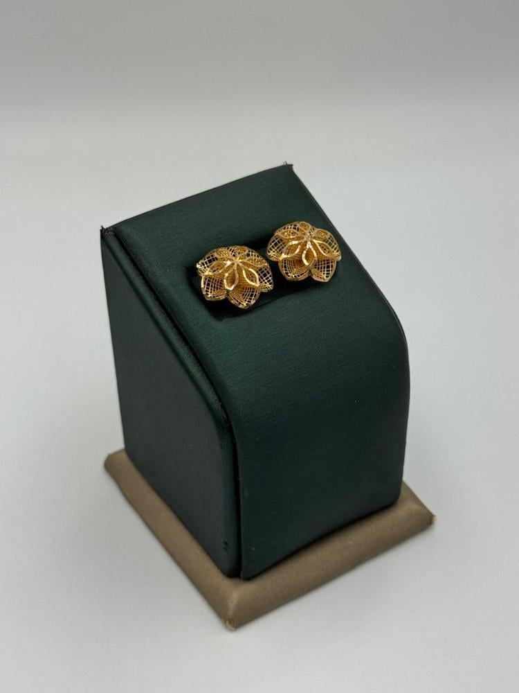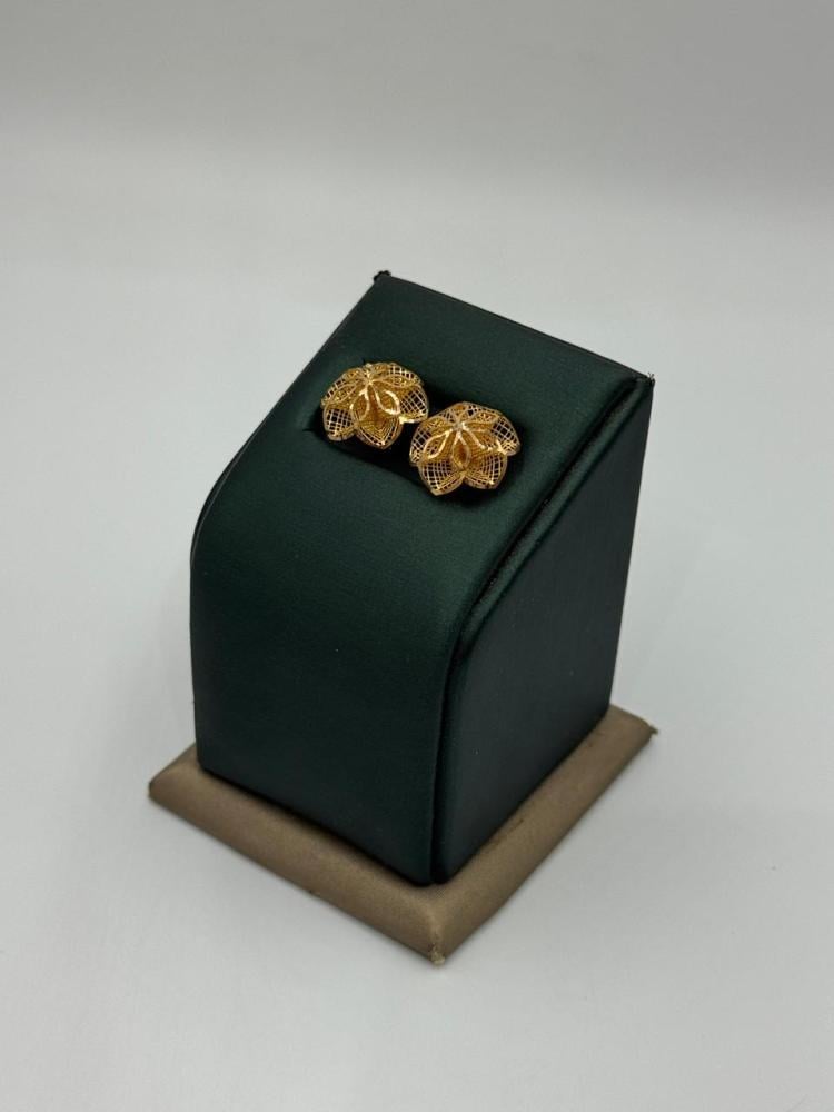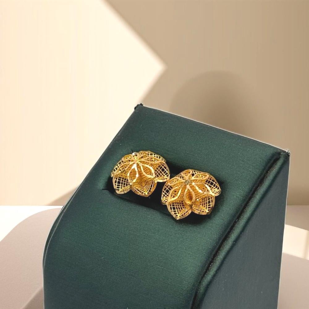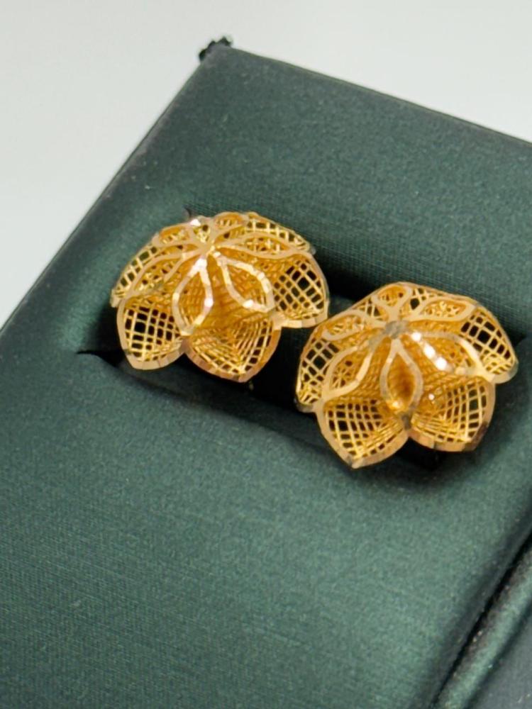 حلق ذهب عيار 22 بتصميم وردة أنيق وزن 1.98 جرام، يمنحك لمسة راقية وأنثوية تعكس الجمال الطبيعي والفخامة بكل تفاصيله.