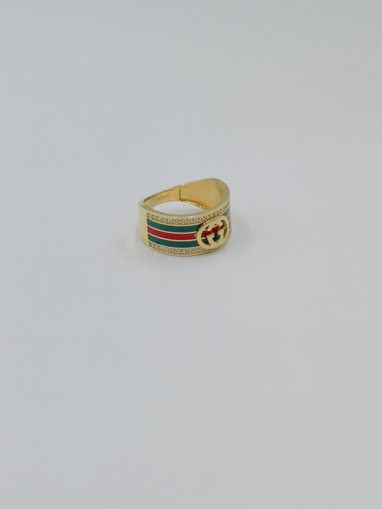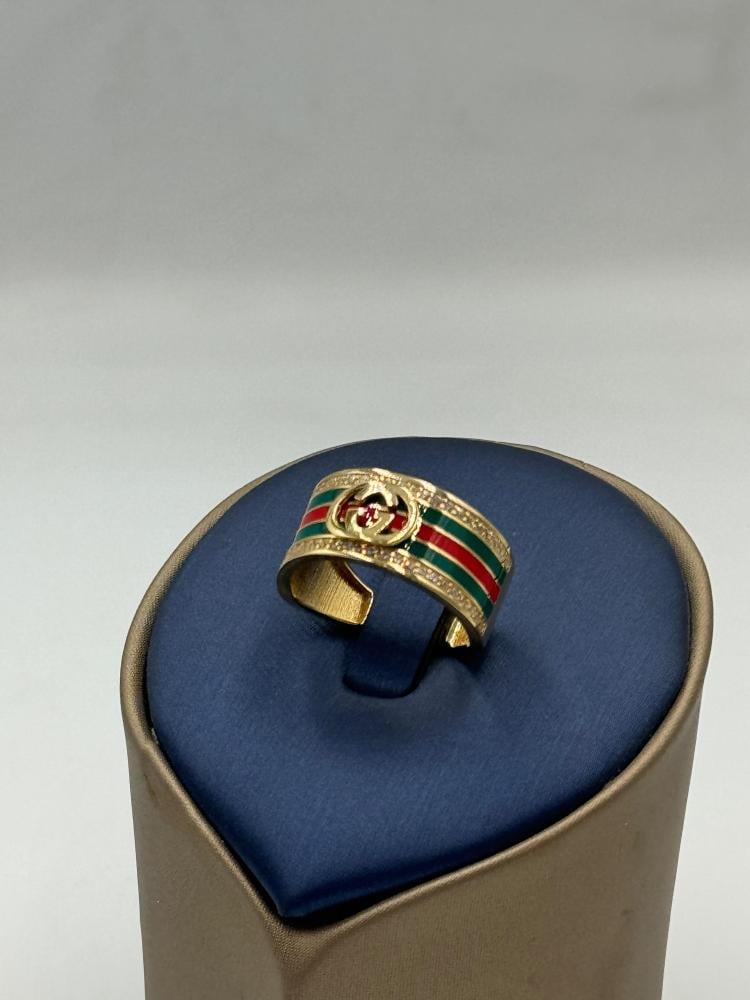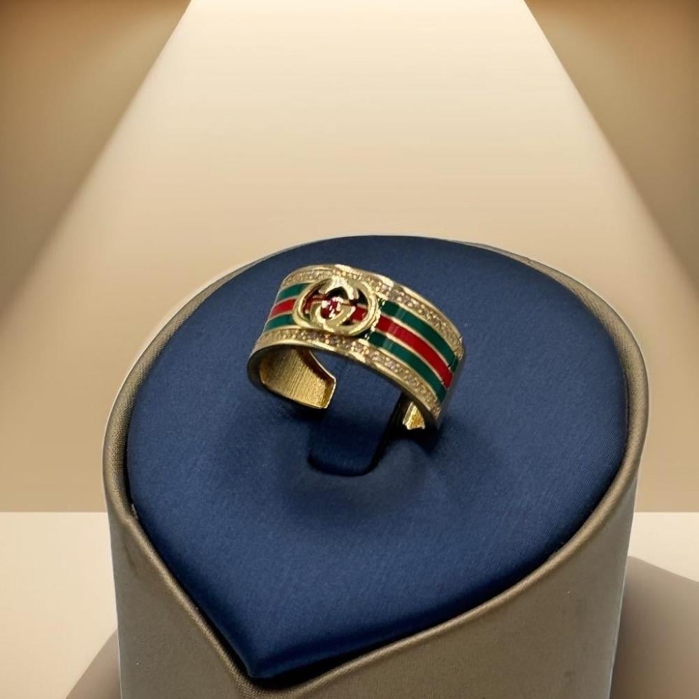 ارتقِ بإطلالتك مع خاتم قوتشي الفاخر المصنوع من ذهب عيار 18 بوزن 5.04 جرام، والذي يتميز بتصميمه العصري الجريء والمستوحى من هوية دار الأزياء الإيطالية الشهيرة Gucci.