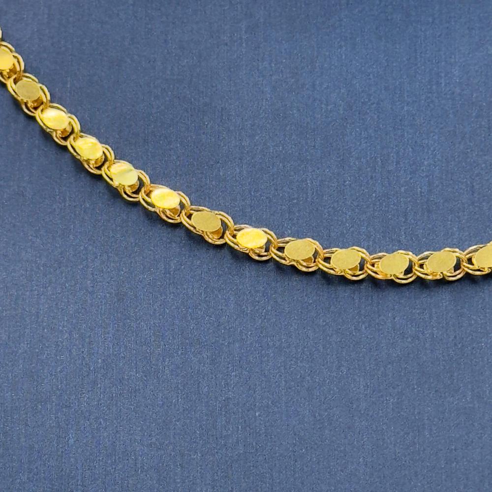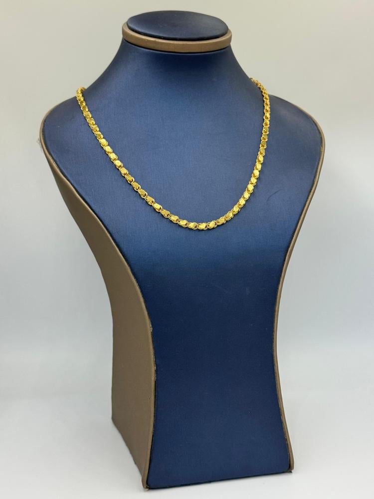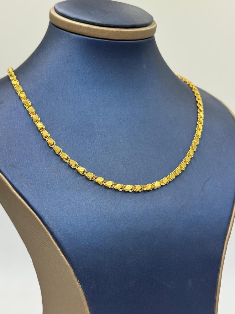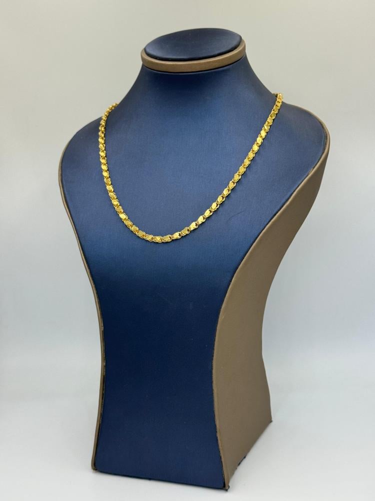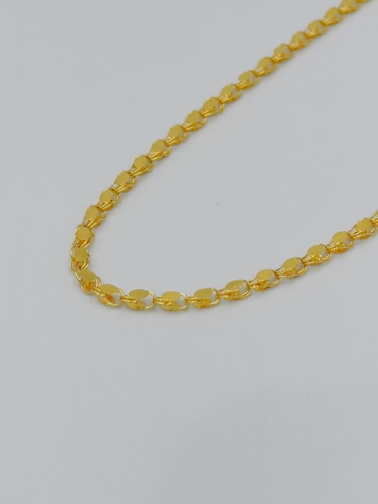 سلسال حلبي أنيق مصنوع من ذهب أصلي عيار 18 بتصميم كلاسيكي يعكس الأصالة والفخامة. يتميز بلمعانه الراقي الذي يضفي لمسة مميزة على إطلالتك اليومية والمناسبات الخاصة. متوفر بعدة أطوال لتناسب جميع الأذواق وتمنحك مظهراً أنيقاً متفرداً.