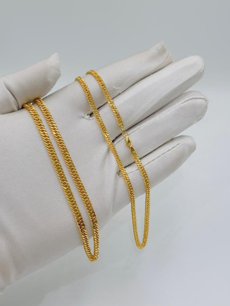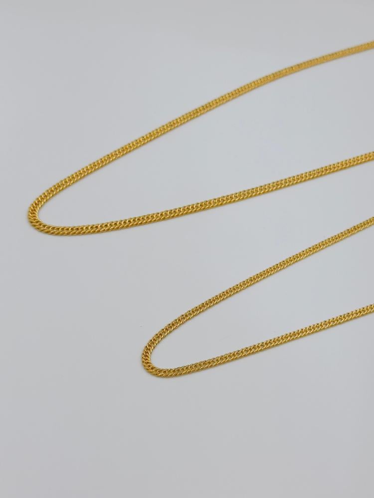 الوصف: سلسال جنزير ذهبي فاخر عيار 18، متوفر بوزنين 6.47 جرام و10.45 جرام، بطول 22 بوصة (55 سم) يمنحك حضوراً مميزاً وإطلالة راقية. تصميم متين وأنيق يجمع بين القوة والفخامة، مثالي للارتداء اليومي أو المناسبات الخاصة.