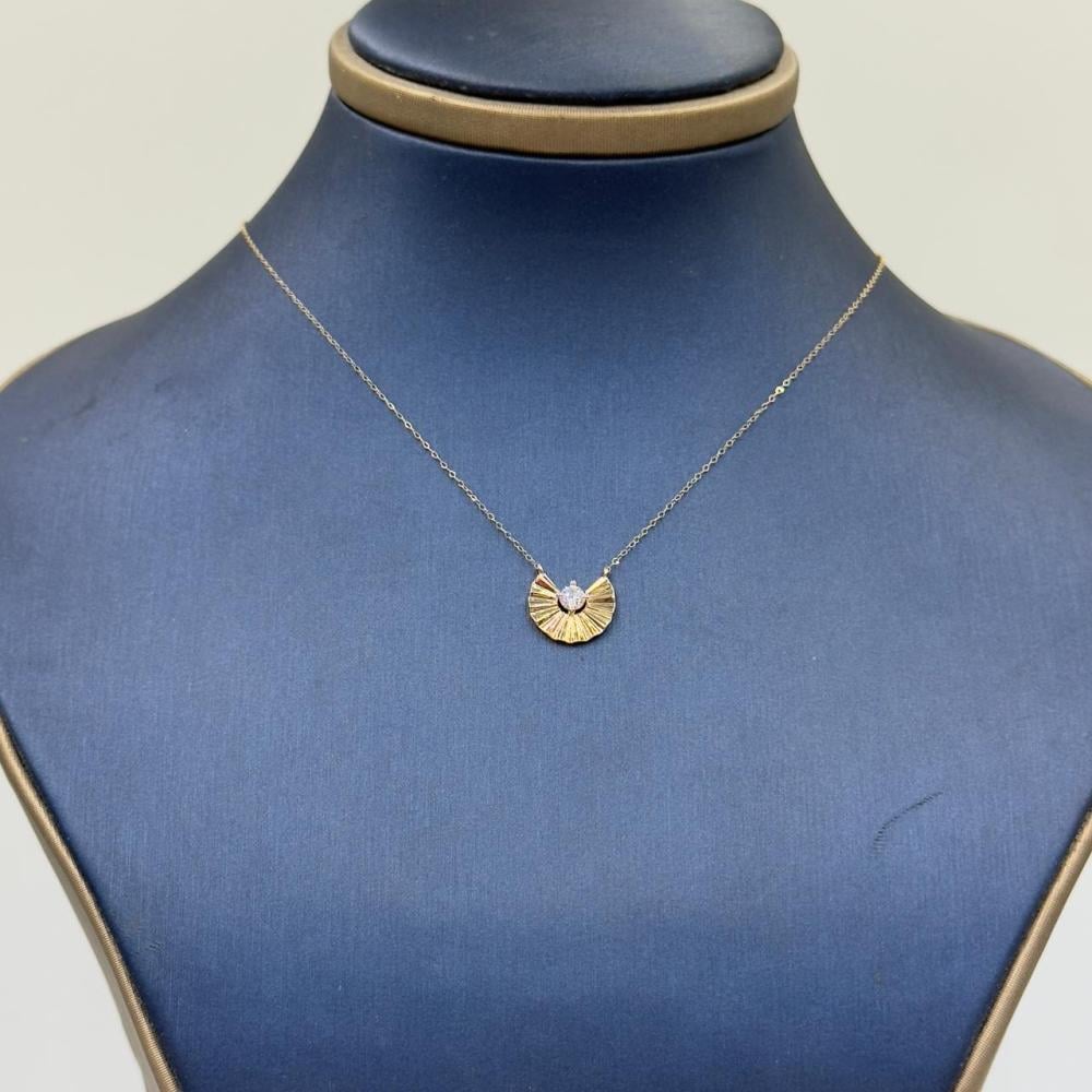الوصف: عقد ذهب عيار 18 بتصميم أنيق وخفيف يزين العنق بأسلوب راقٍ. يتميز بوجود فص زركون لامع في منتصف السلسال ليمنح لمسة من البريق الناعم، مثالي للإطلالة اليومية أو المناسبات الخاصة. خفيف الوزن ومريح للارتداء مع طول يناسب مختلف الأعناق.