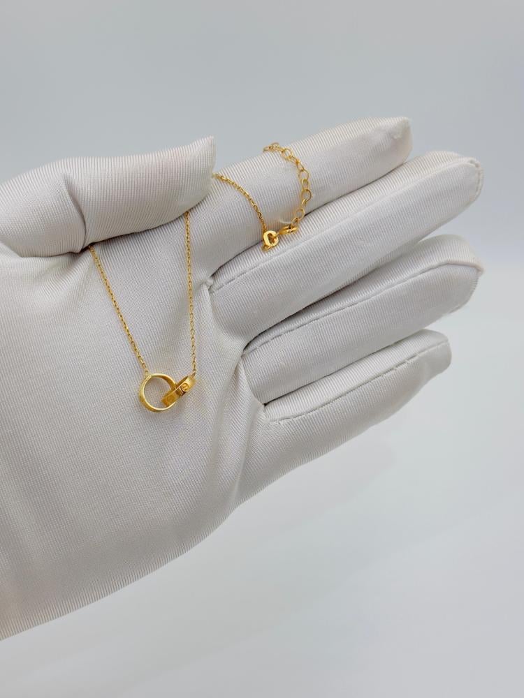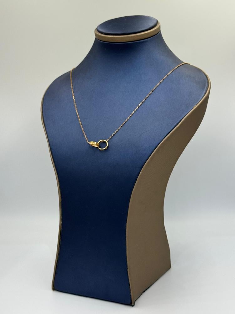 📋 الوصف: عقد أنيق بتصميم مستوحى من كارتير الشهير، مصنوع من ذهب عيار 18 بوزن 2.80 جرام وطول 18 بوصة (44 سم)، يتميز بتفاصيل عصرية راقية تضيف لمسة من الفخامة والرقي إلى إطلالتك اليومية أو الرسمية.