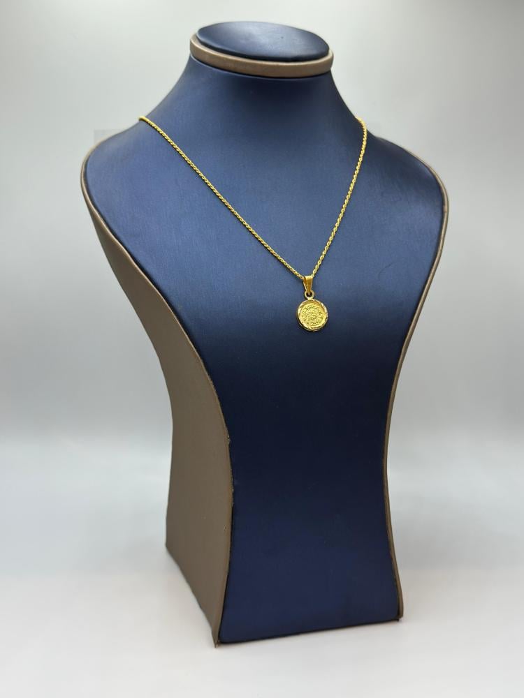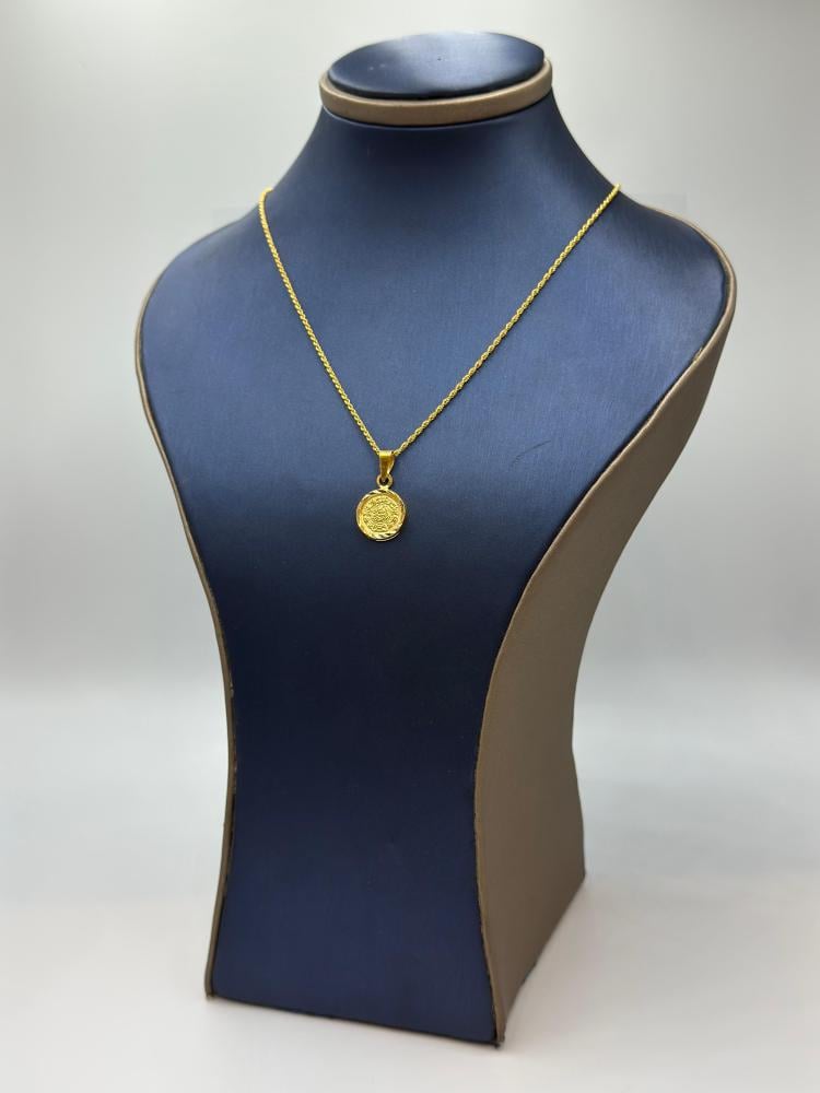 🔹 الوصف: سلسال أنيق مزوّد بتعليقة على شكل جنيهات مصنوعة من ذهب عيار 21 بوزن 1.43 جرام، بطول 18 بوصة (44 سم). تصميم بسيط وفخم يضيف لمسة من الرقي والجاذبية، مثالي للاستخدام اليومي أو كهدية مميزة.
