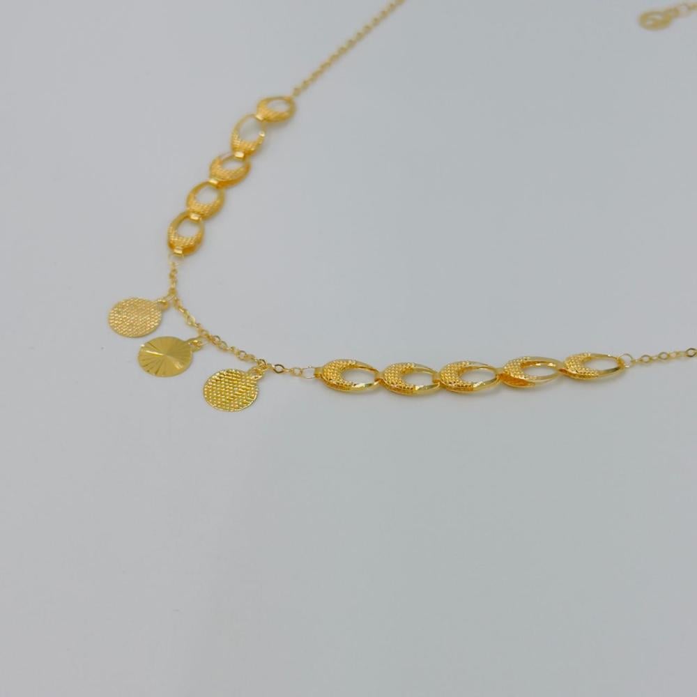 الوصف: عقد ذهب أصلي عيار 21 بتصميم أنيق ووزن متوازن يمنحك لمسة من الفخامة اليومية. بطول 17 بوصة يلتف حول العنق بانسيابية ليضفي حضوراً لافتاً على إطلالتك سواء في المناسبات أو الاستخدام اليومي. قطعة كلاسيكية تجمع بين البساطة والأناقة.