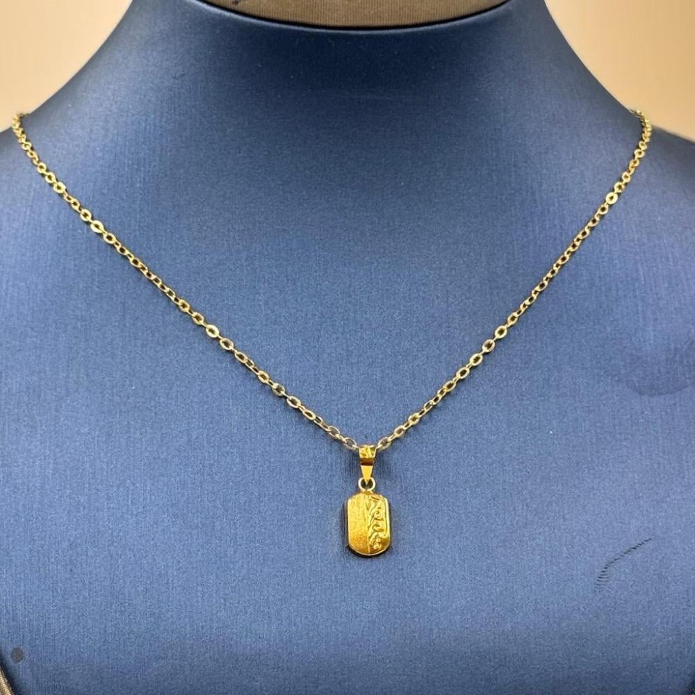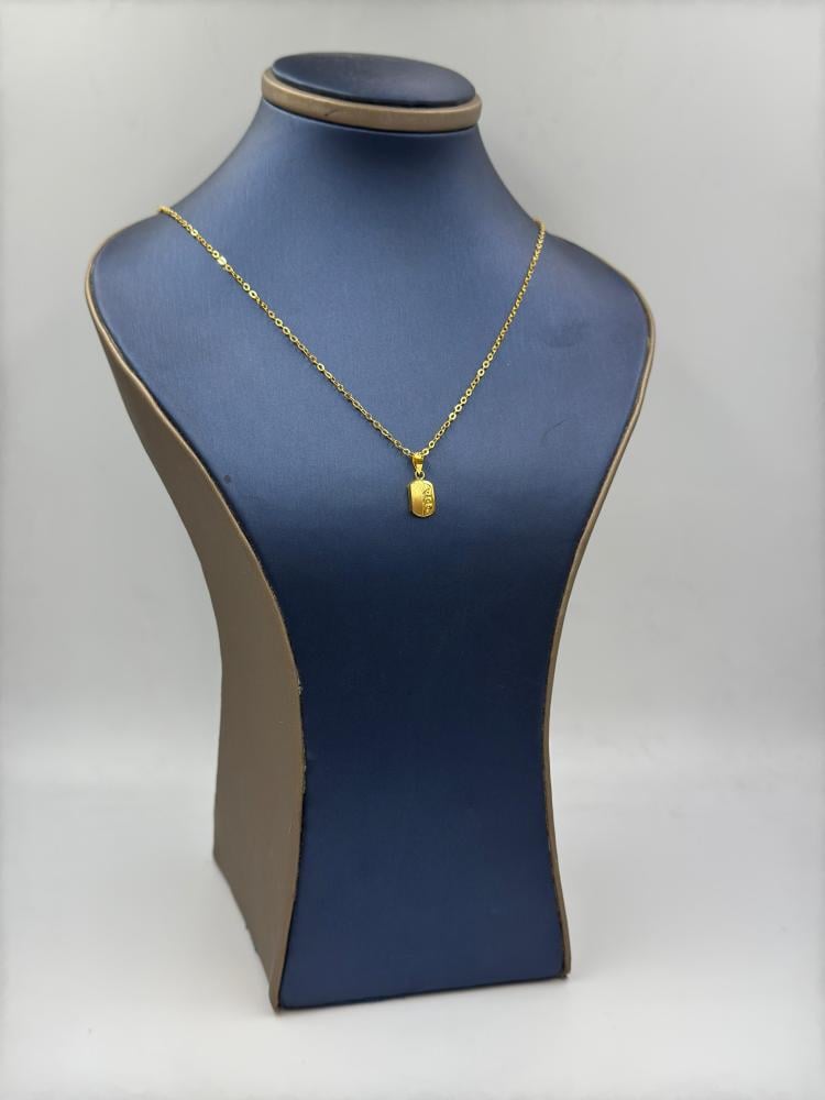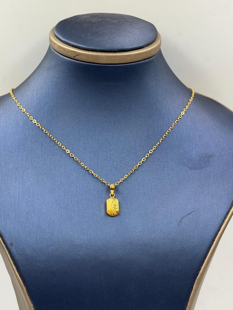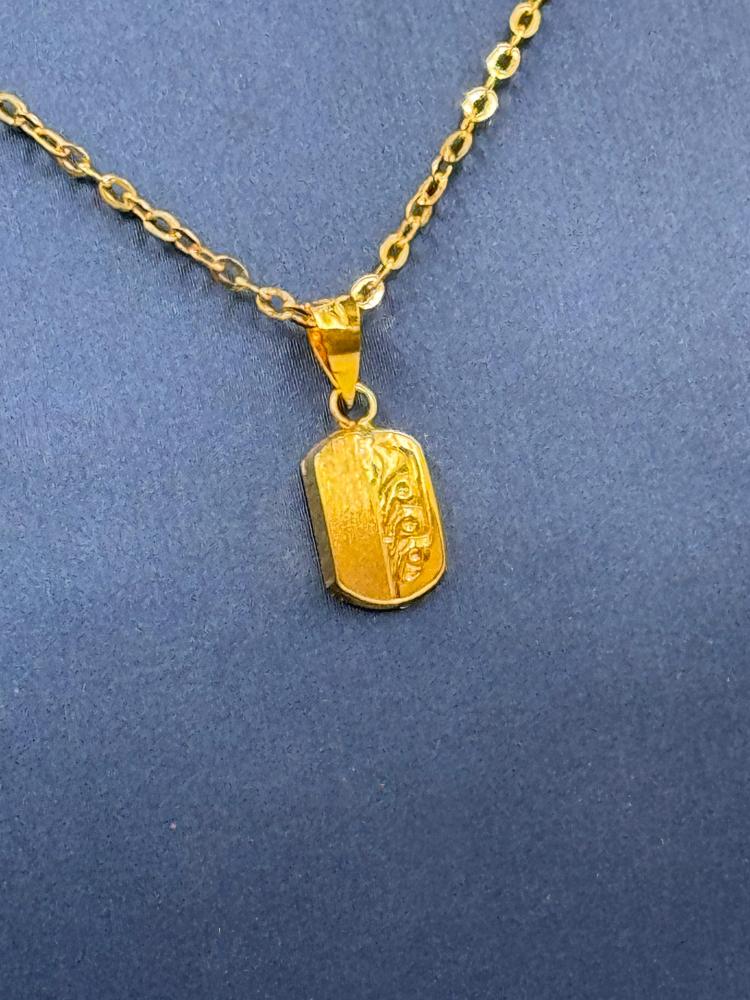 سلسال ذهب عيار 18 مع تعليقة طوليّة بتصميم فني رائع، مثالي لمن يبحث عن قطعة مجوهرات تجمع بين الأناقة والقوة. يتميز السلسال بكونه خفيف الوزن وسهل الارتداء، بينما تمنح التعليقة المنقوشة لمسة من التفرد والجمال. سواء كانت للاستخدام اليومي أو للمناسبات الخاصة، هذا المنتج يضيف لمسة من الفخامة إلى إطلالتك.