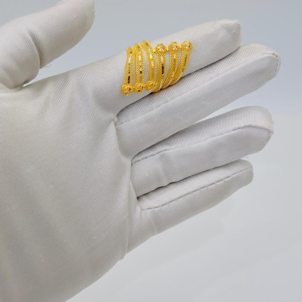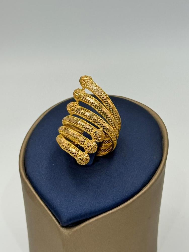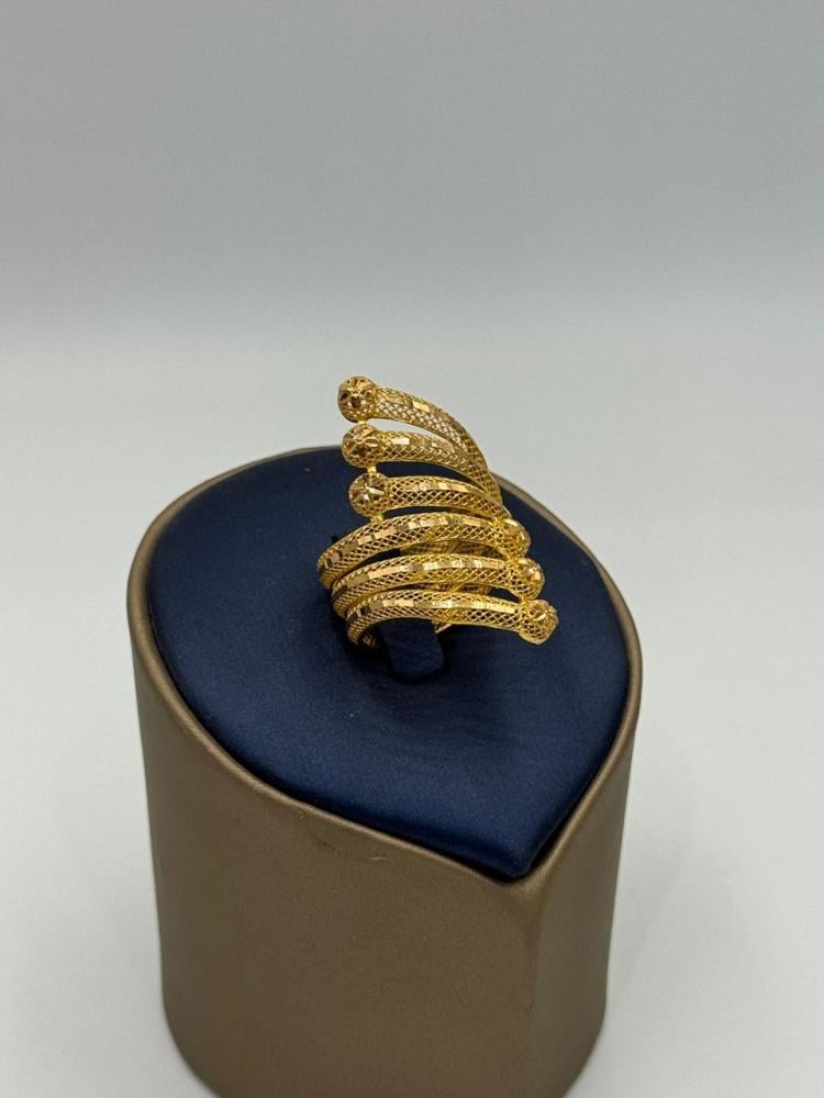 اكتشفوا جمال هذا الخاتم المبروم الملتوي المصنوع من ذهب عيار 21، تصميم فريد يضفي لمسة من الرقي والأناقة على إطلالتك. يمكن تعديل مقاسه ليناسب جميع الأصابع، ليكون خيارًا مثاليًا لأي مناسبة.