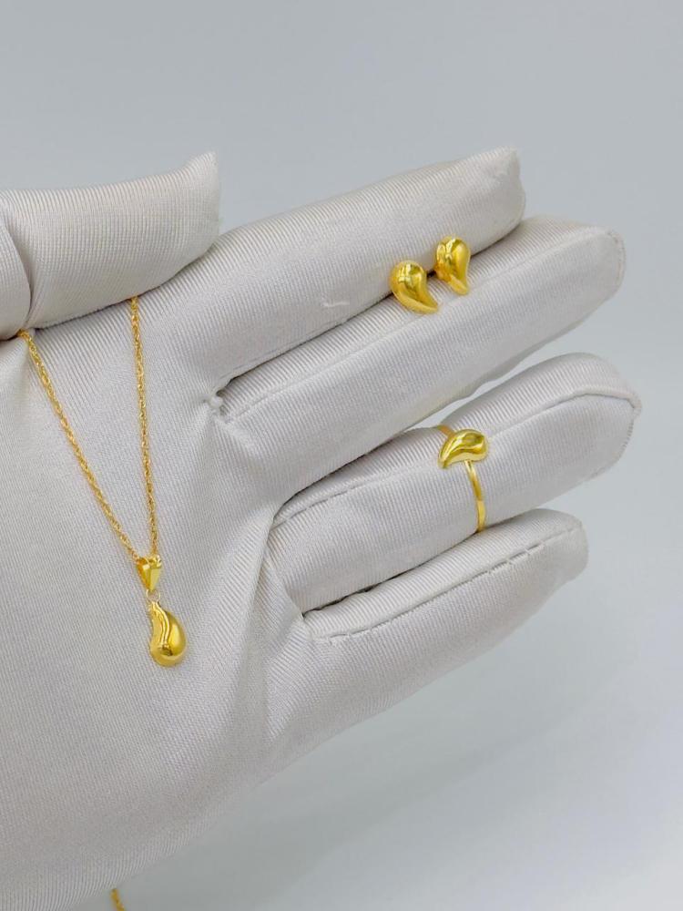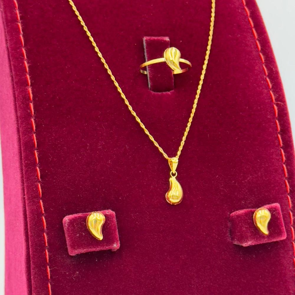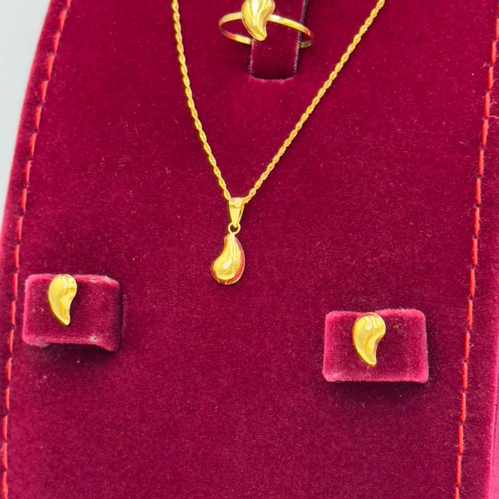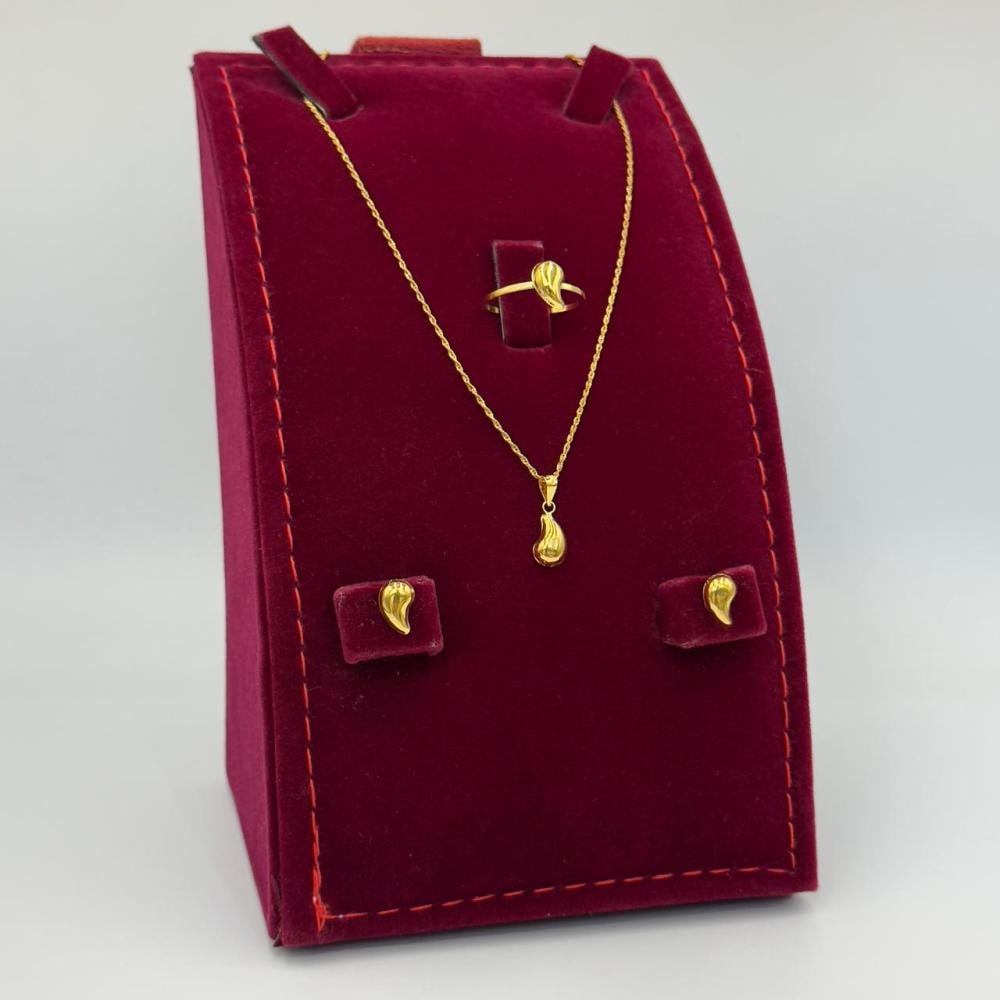 الوصف: طقم ذهب عيار 18 بتصميم أنيق على شكل بوتيغا أو دمعة يضفي لمسة من الرقي والبساطة على إطلالتك. خفيف الوزن وناعم، مثالي للارتداء اليومي والمناسبات الخاصة، ليمنحك حضوراً مميزاً وأسلوباً عصرياً راقياً.