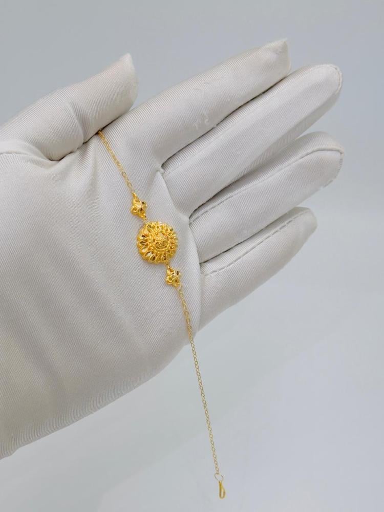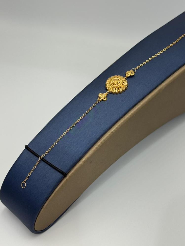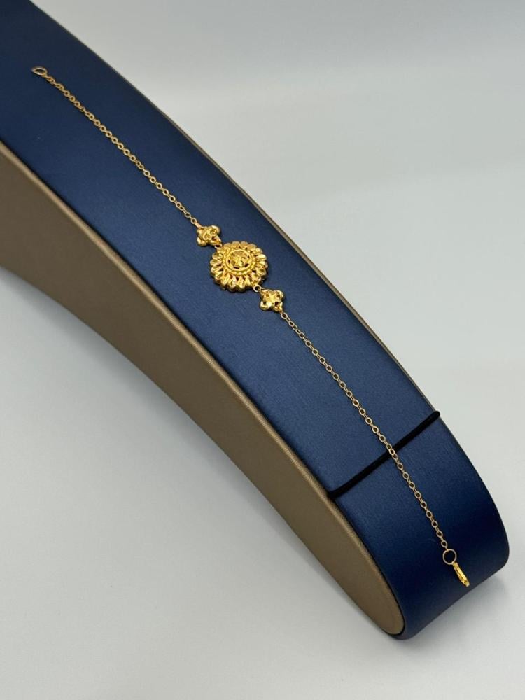 Description: A 21K gold bracelet featuring the elegant Chair Jaber rose design — blending classic charm with modern sophistication. Lightweight yet radiant, it highlights your wrist with the timeless shine of authentic gold, perfect for both daily wear and special occasions.