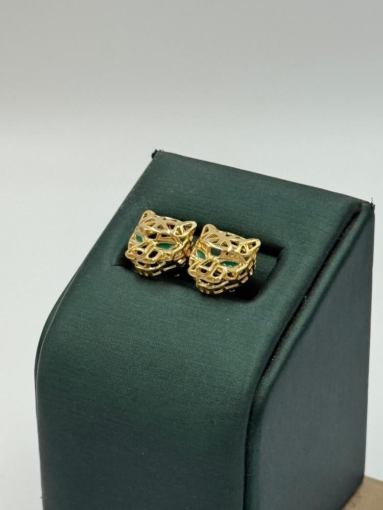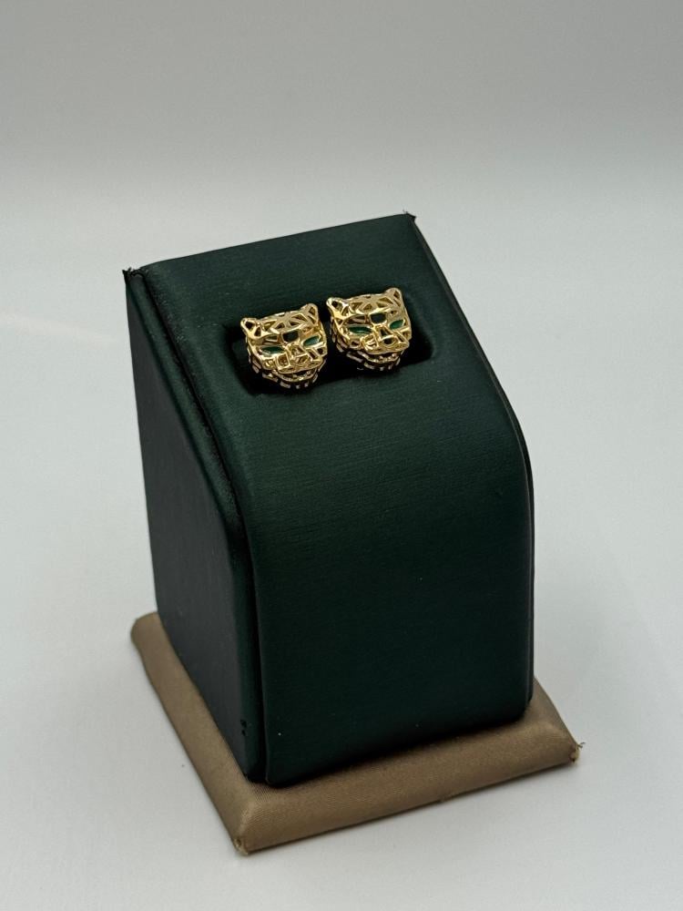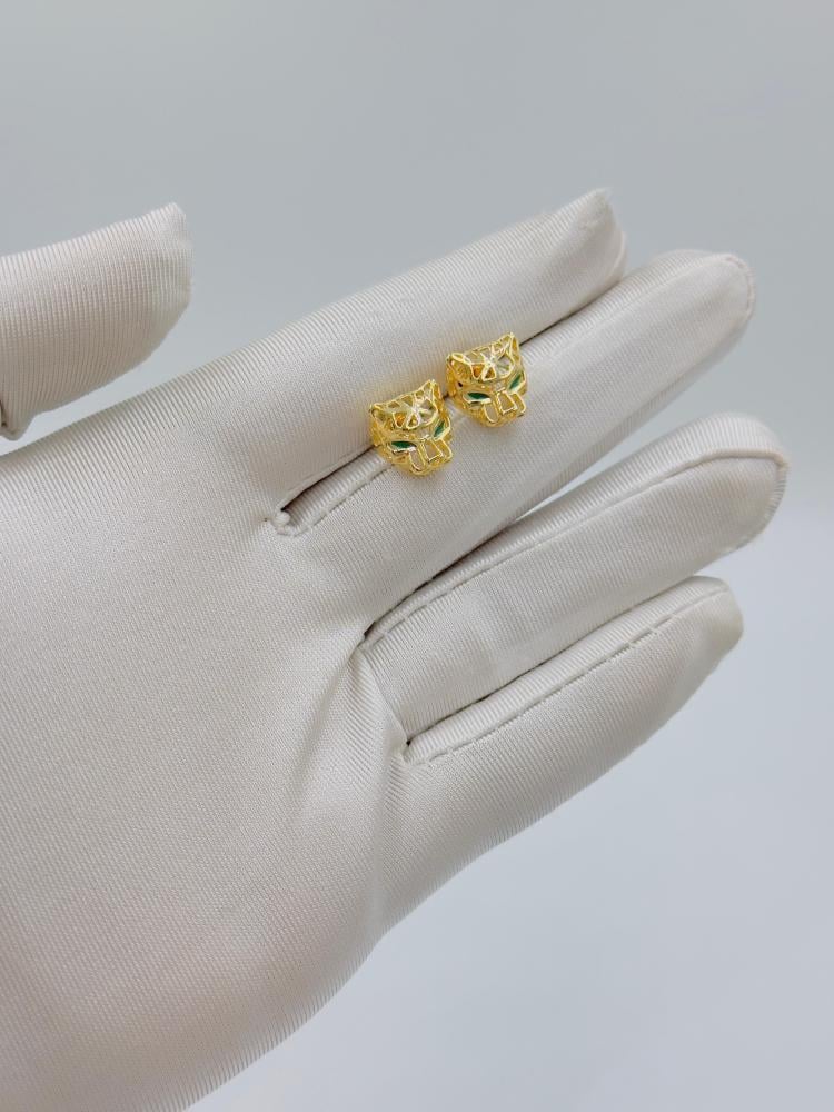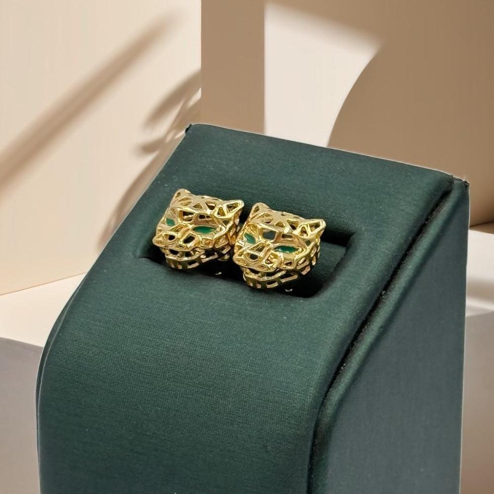 Make a fierce and unique statement with these luxurious earrings crafted from 18K yellow gold. Featuring a 3D openwork panther face design with striking green eyes, this piece symbolizes power and confidence, adding a modern edge to both everyday and formal looks.
