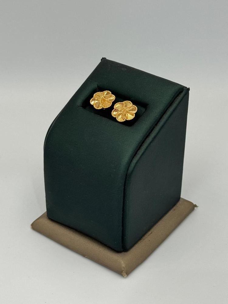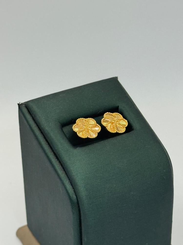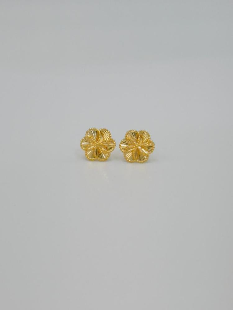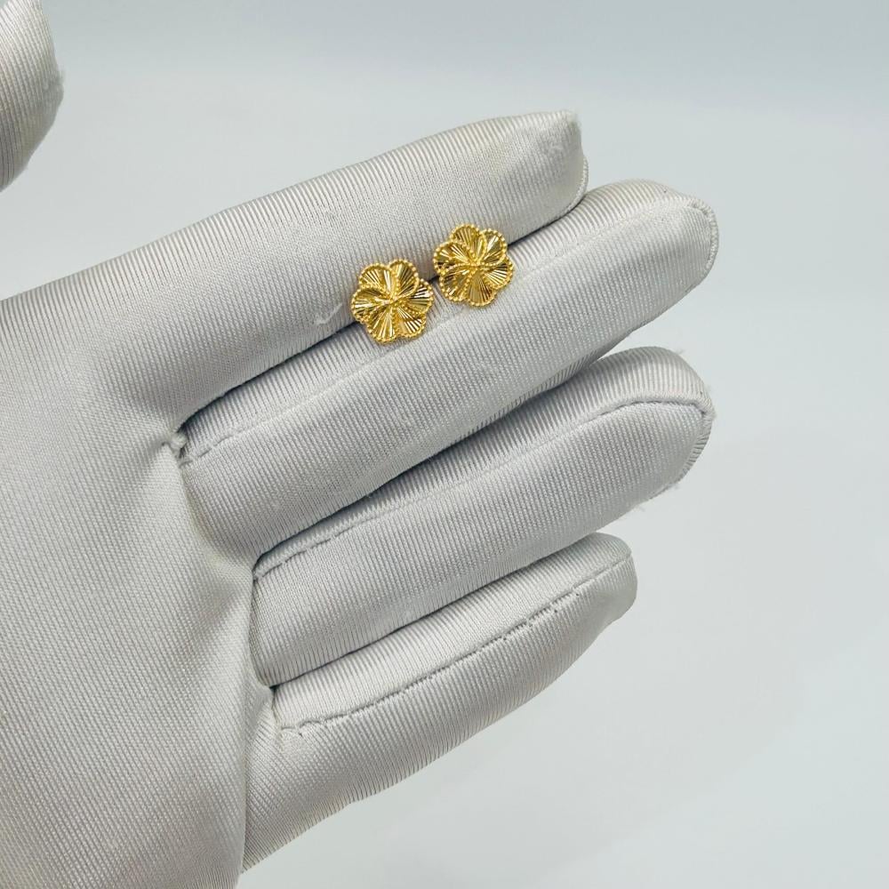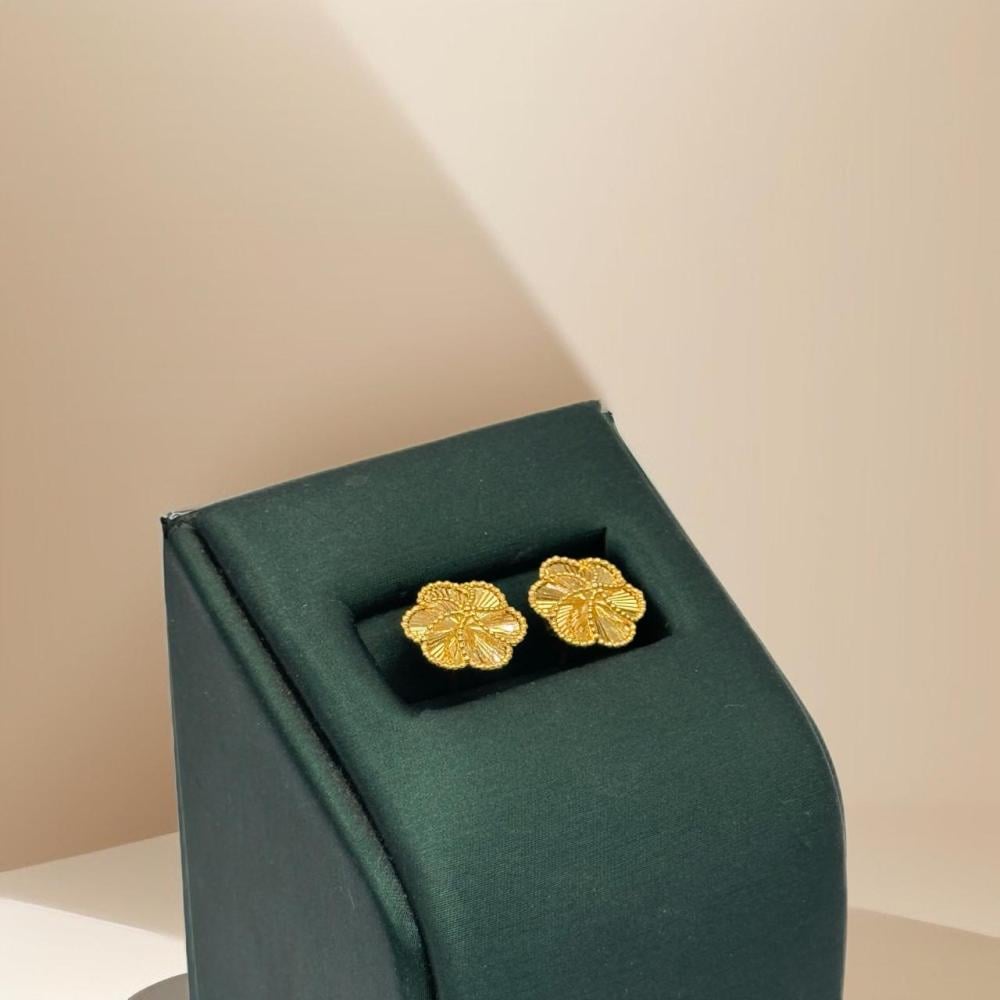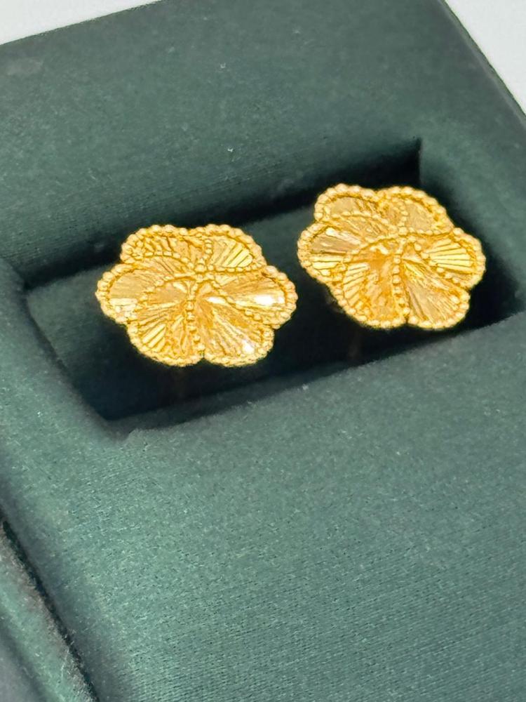Shine with elegance wearing these 21K gold rose-shaped earrings. Their delicate design captures the natural beauty of a rose, adding a feminine and luxurious touch to any look.