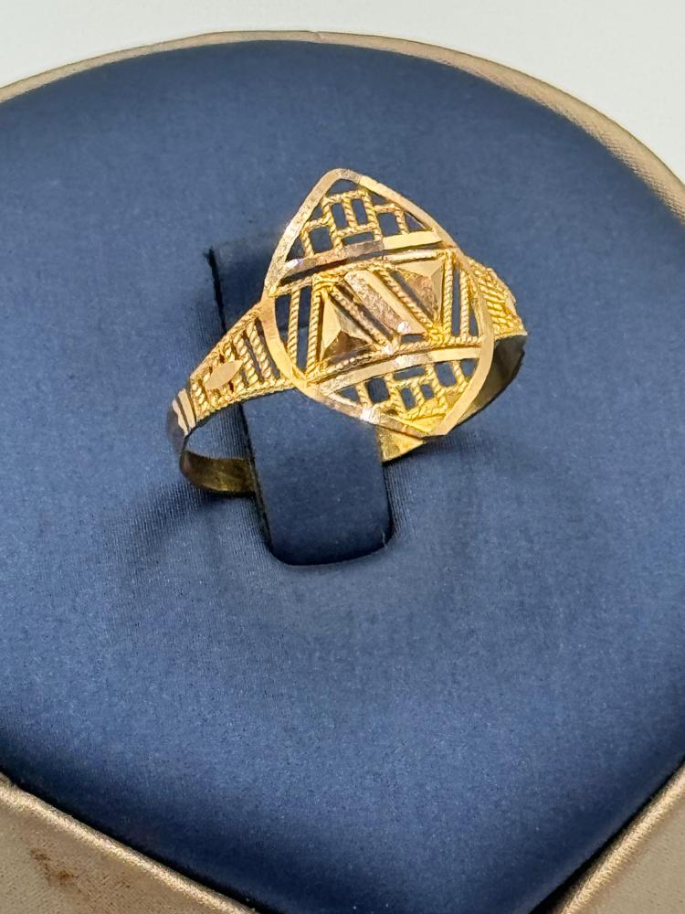 Shine with elegance and modern charm with this uniquely designed geometric gold ring. Crafted from high-quality 21K gold, this ring adds a touch of sophistication to your everyday or special occasion look. A perfect choice for those who appreciate fine details and lightweight comfort.