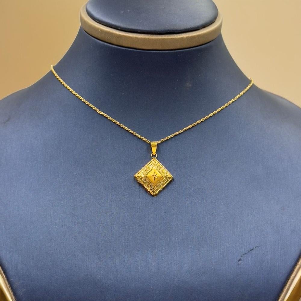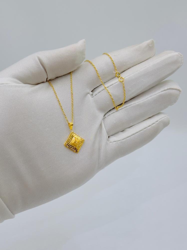 📌 Description: 18K gold necklace with a delicate pendant, weighing 0.77 grams and measuring 16.5 inches (42 cm) in length. A simple yet elegant design, perfect for daily wear and adding a feminine, refined touch to any look.
