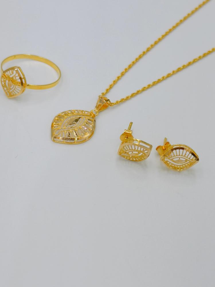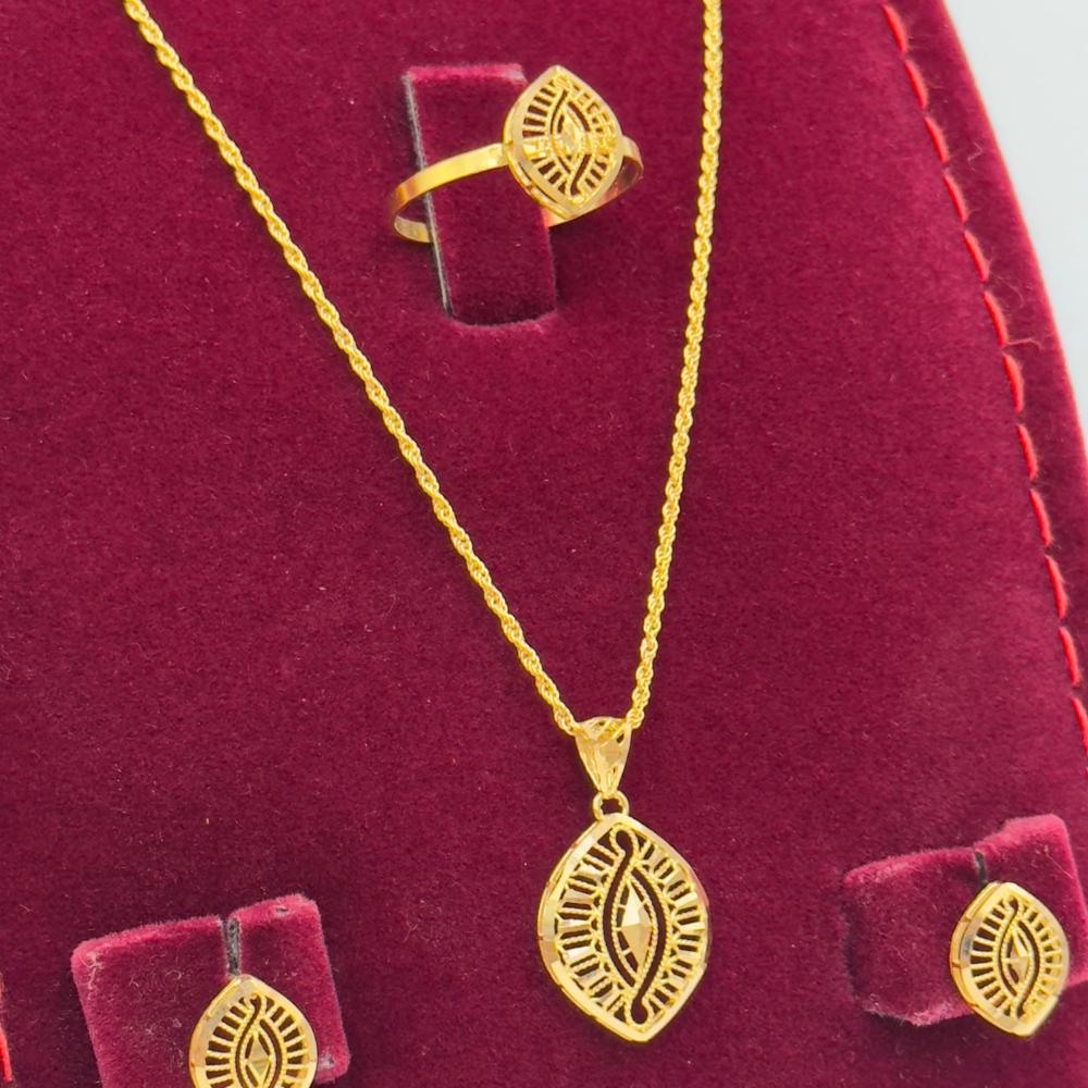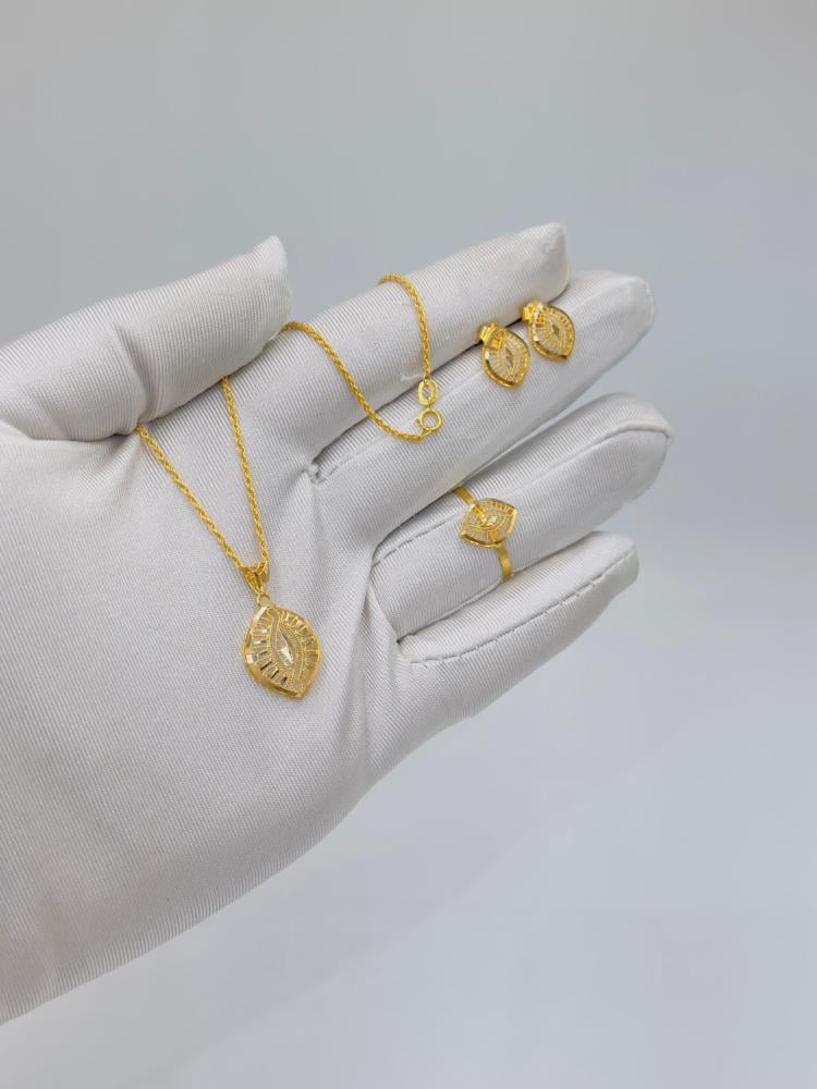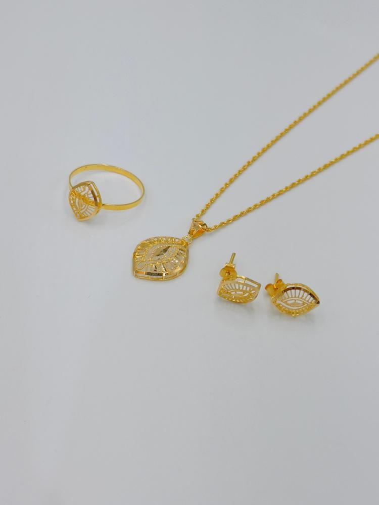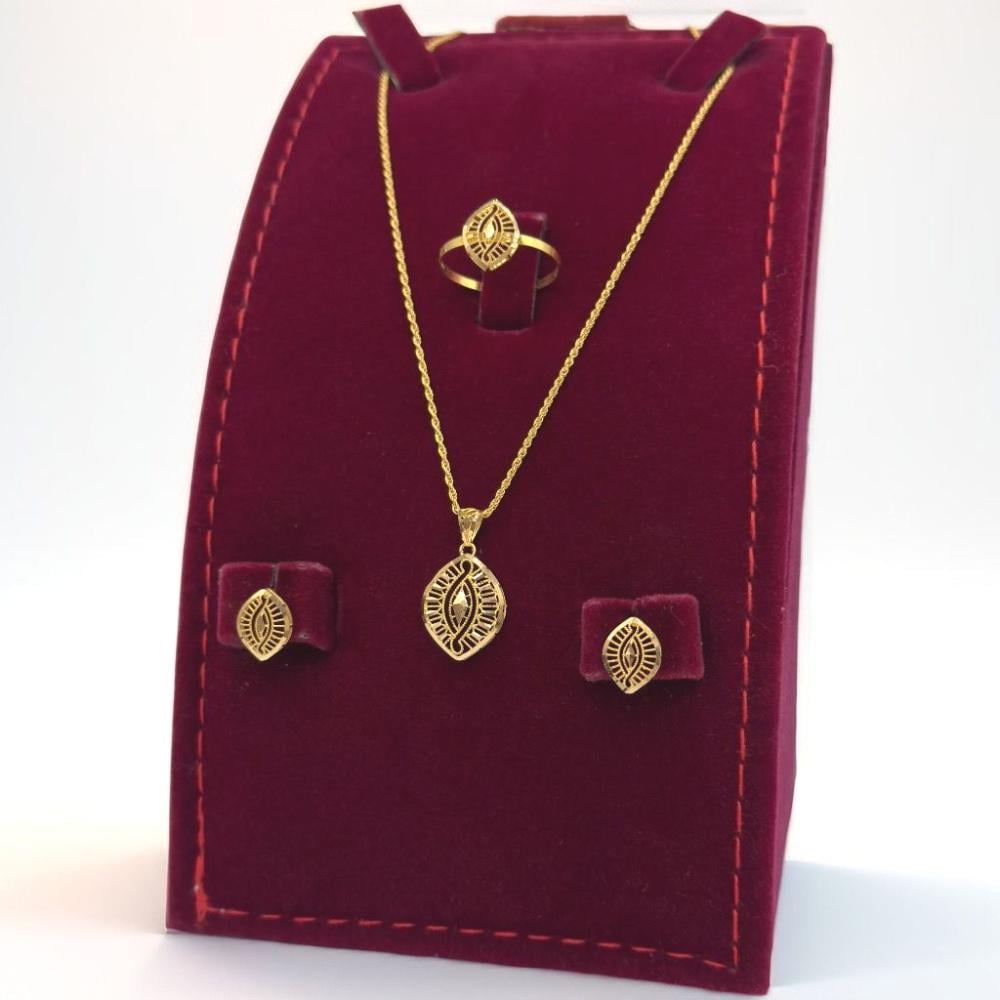 📖 Description: A 21K gold half set featuring a necklace, ring, and earrings in a refined design ✨.