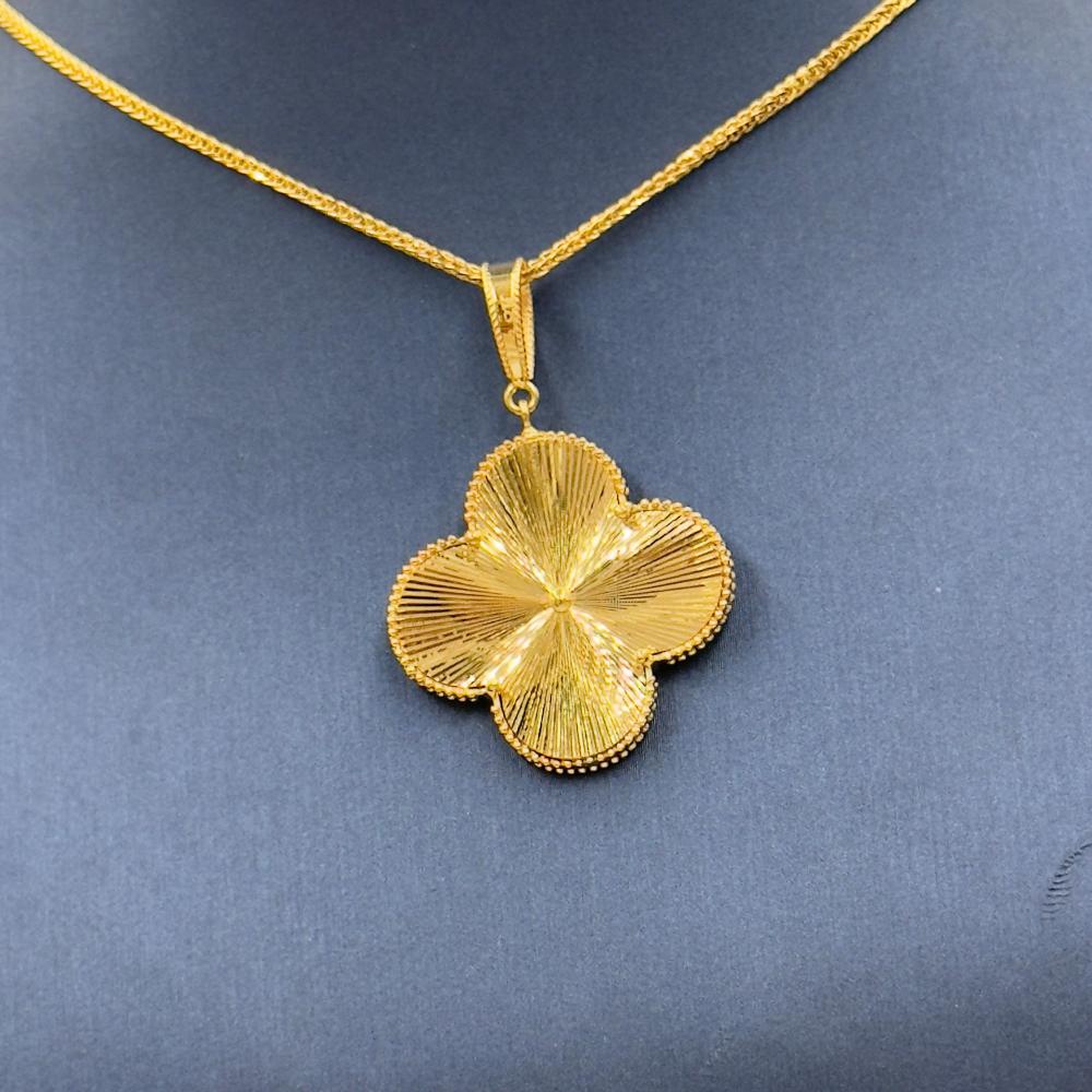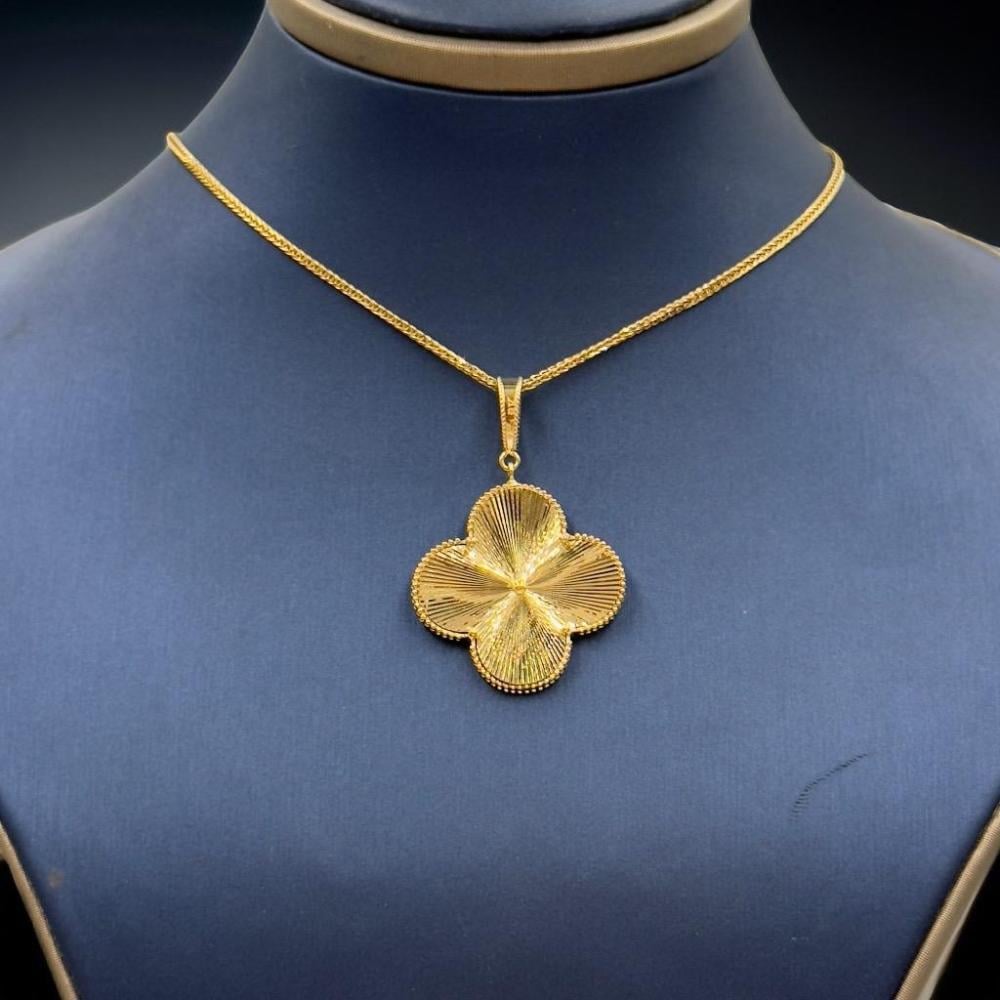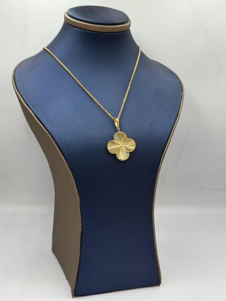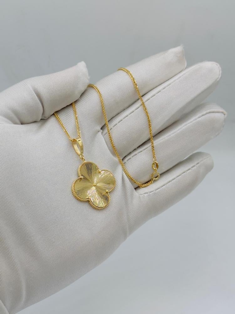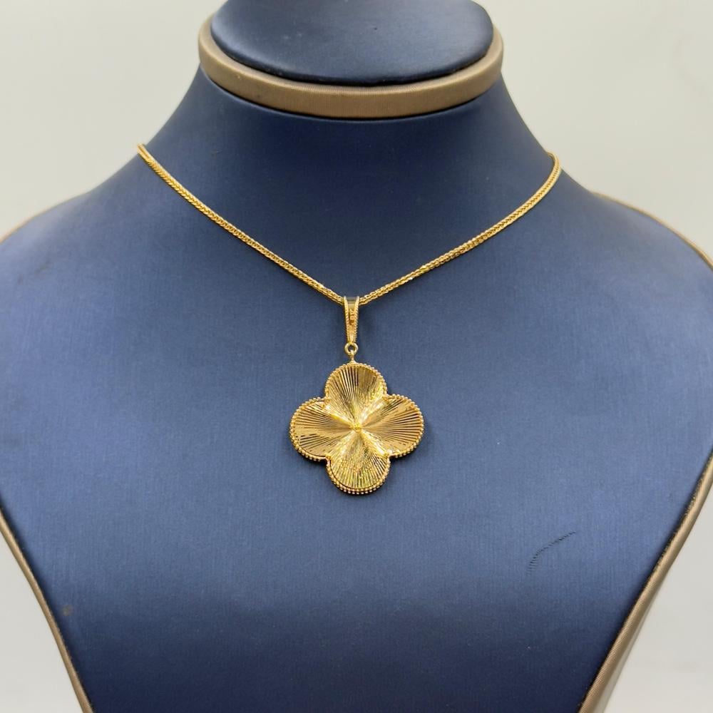 🟡 Product Description: Van Cleef Style 18K Gold Necklace – Elegant Floral CharmAdd a touch of timeless elegance to your look with this beautifully crafted Van Cleef-inspired necklace. Made from 18K gold with a total weight of 5.03 grams, this 18-inch (44 cm) necklace features the iconic four-leaf floral pendant, symbolizing beauty, femininity, and good fortune. A refined and versatile piece perfect for both daily wear and special occasions.