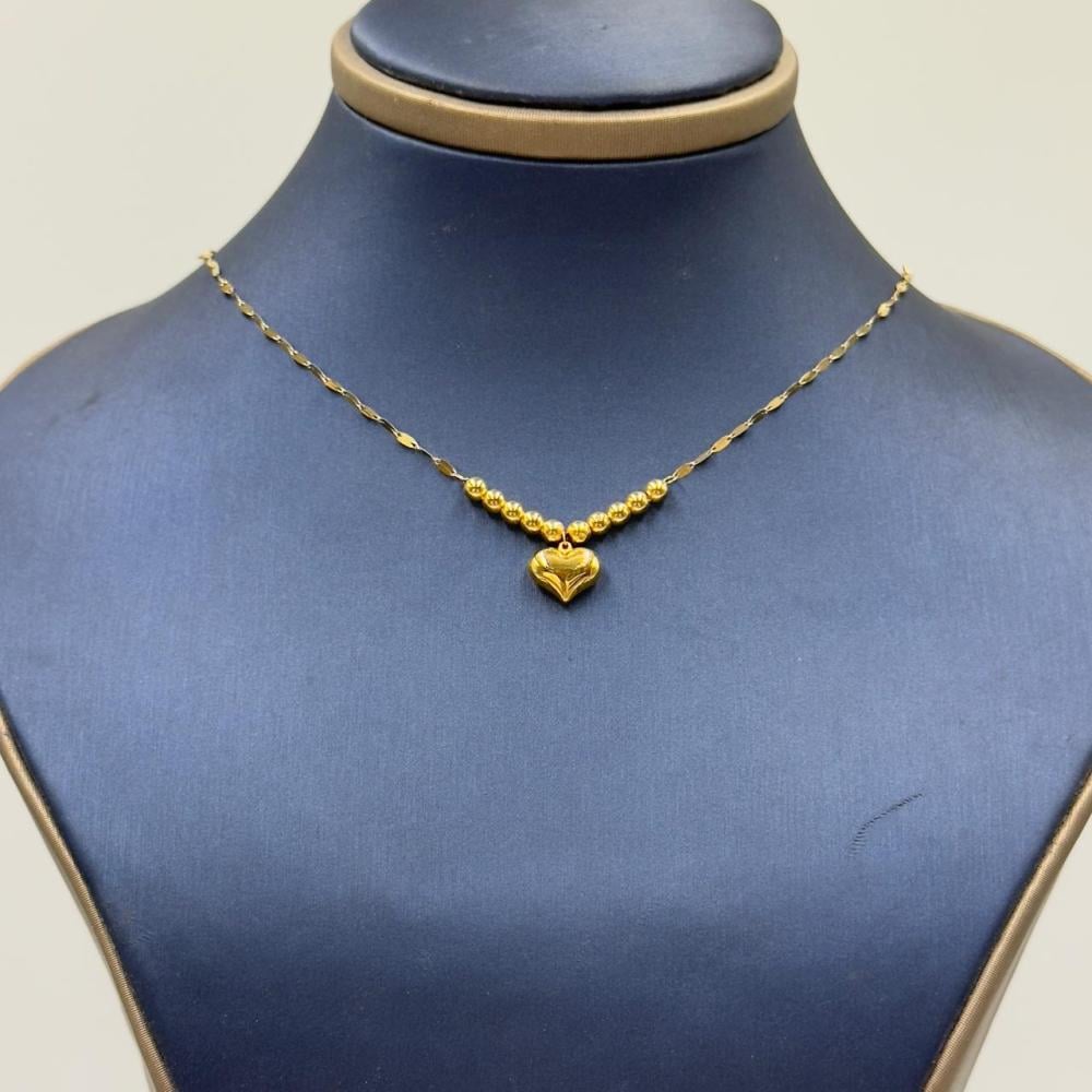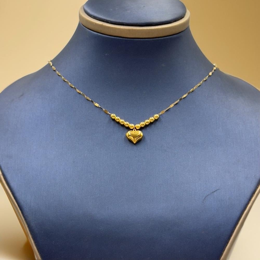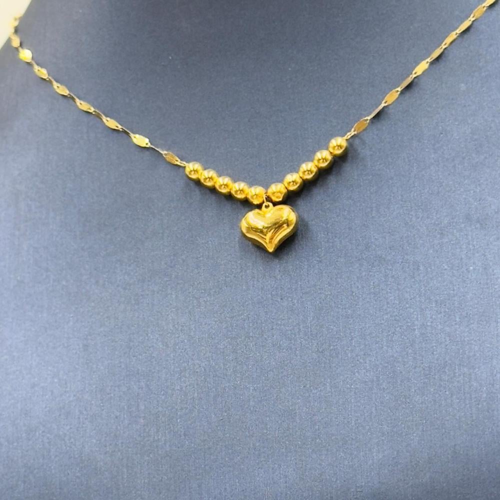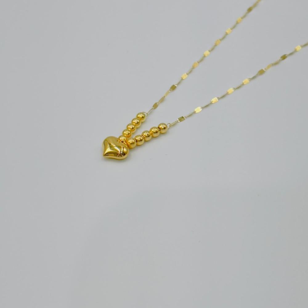 Description: An 18K gold necklace featuring a heart design adorned with delicate gold beads, symbolizing love and timeless beauty.