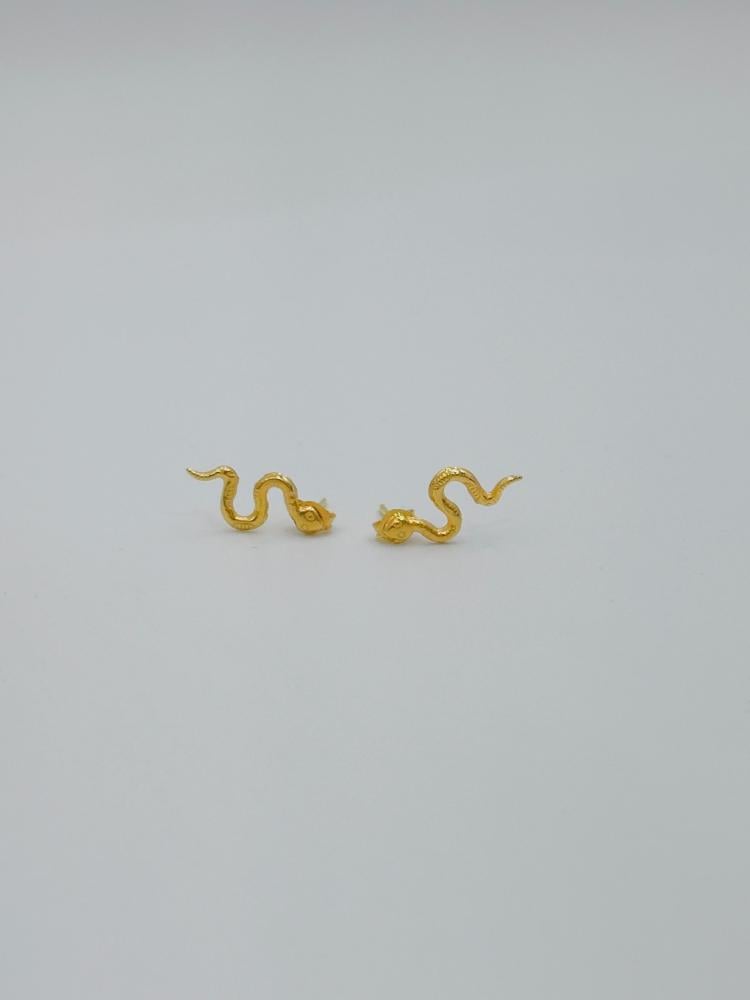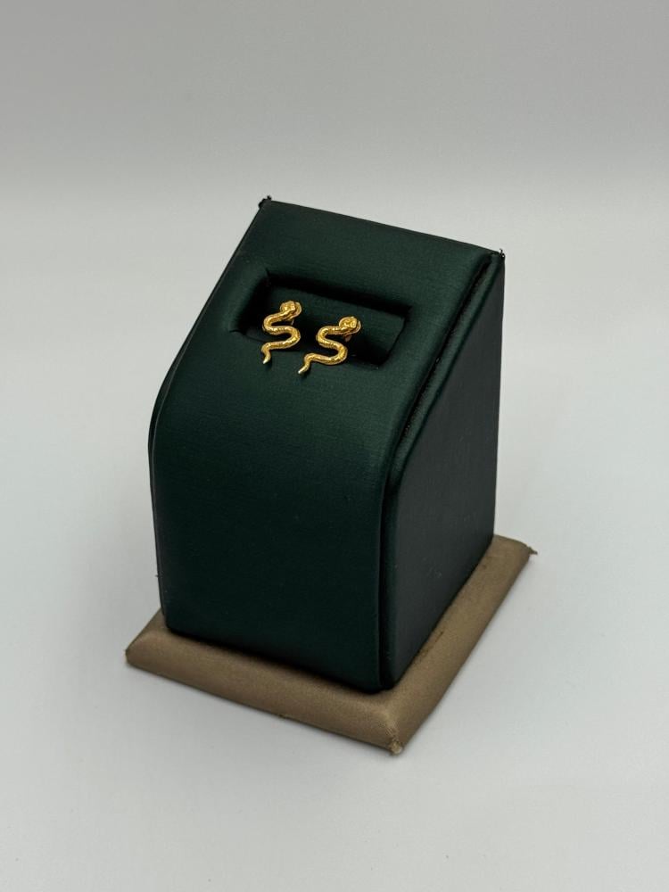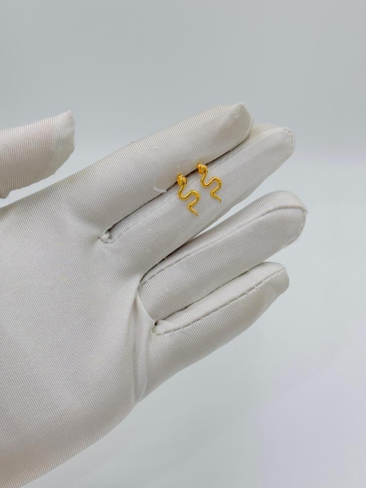 Description: Elegant snake-shaped earrings crafted from 18K gold, weighing 0.52 grams. A bold yet luxurious piece that adds a unique and eye-catching touch to your style.