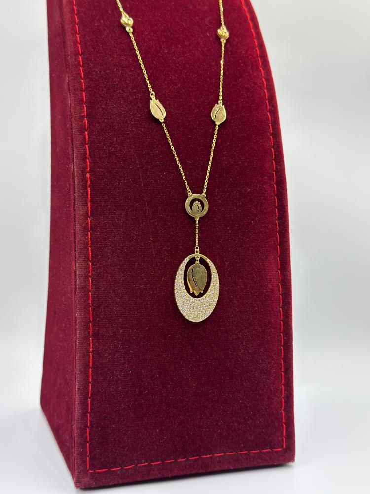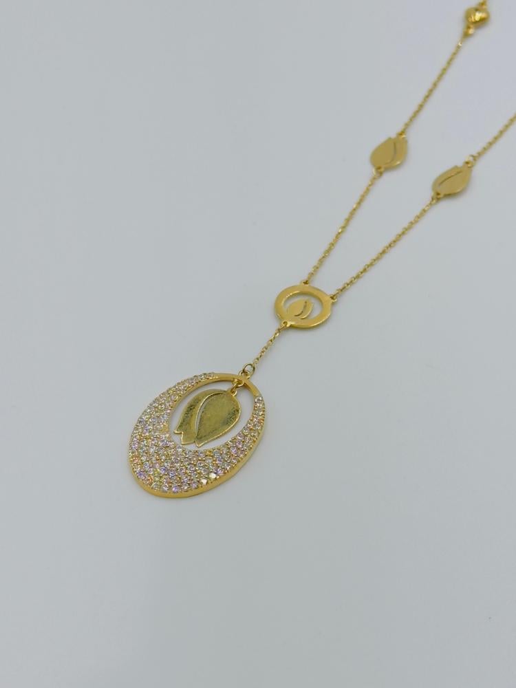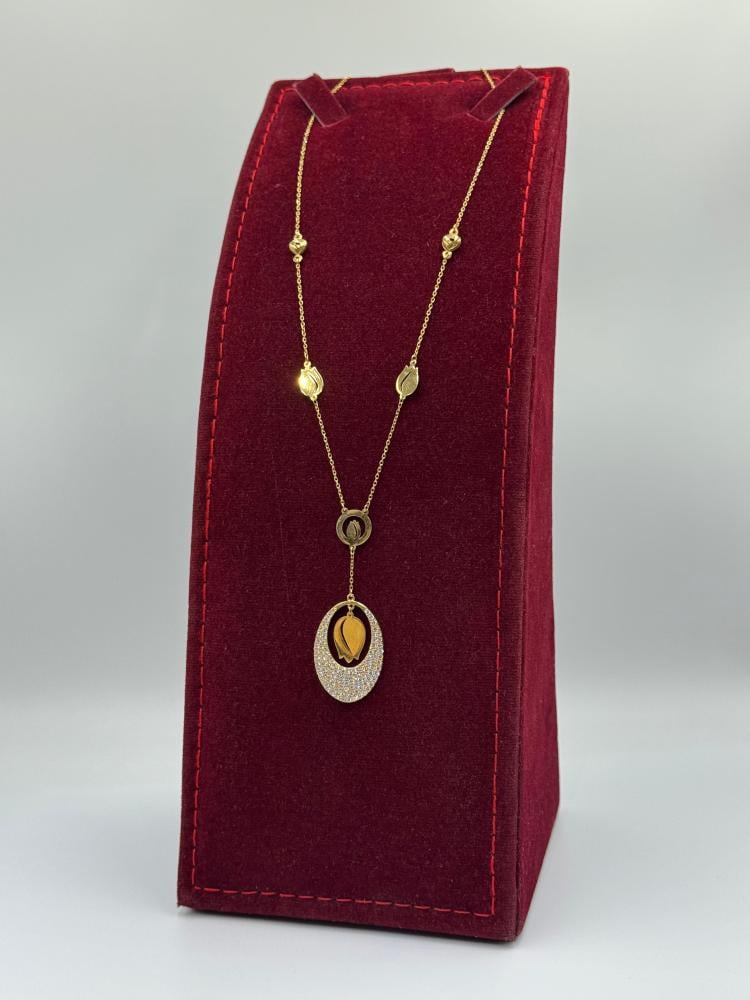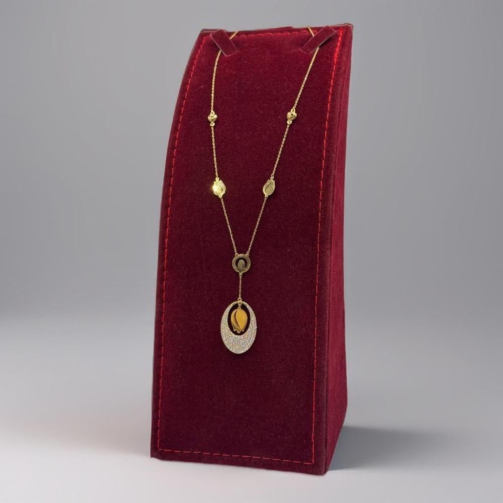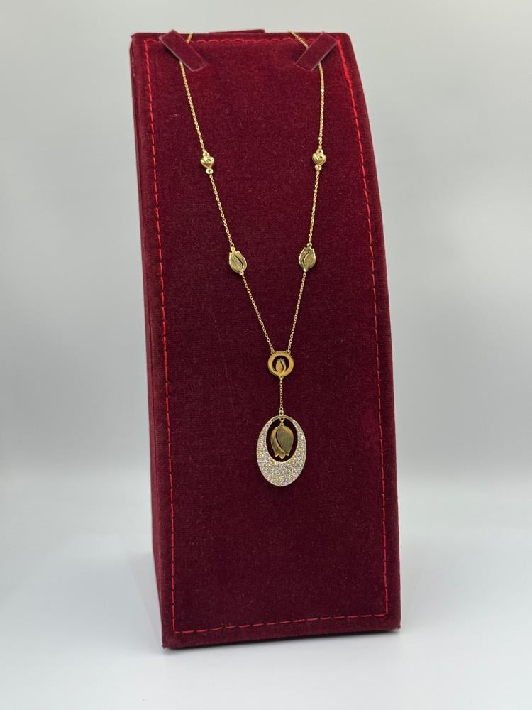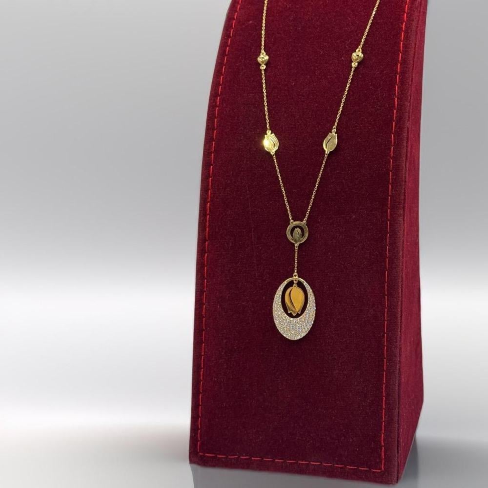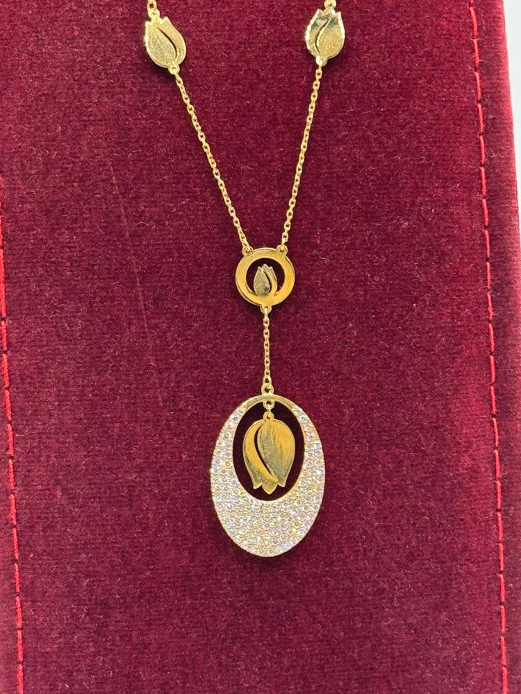 📌 Product Description: A luxurious 18K gold necklace adorned with sparkling stones, weighing 6.70 grams – an elegant piece that adds a touch of glamour to every outfit. With a modern and refined design, it's perfect for all occasions, reflecting your unique taste and confidence.