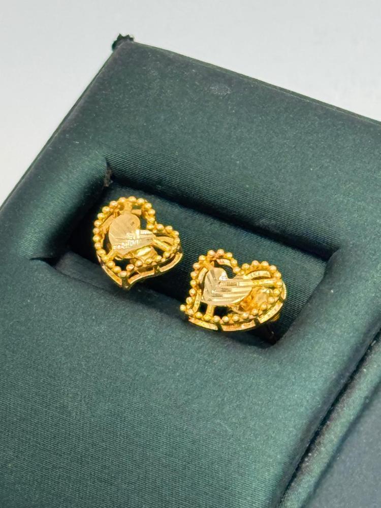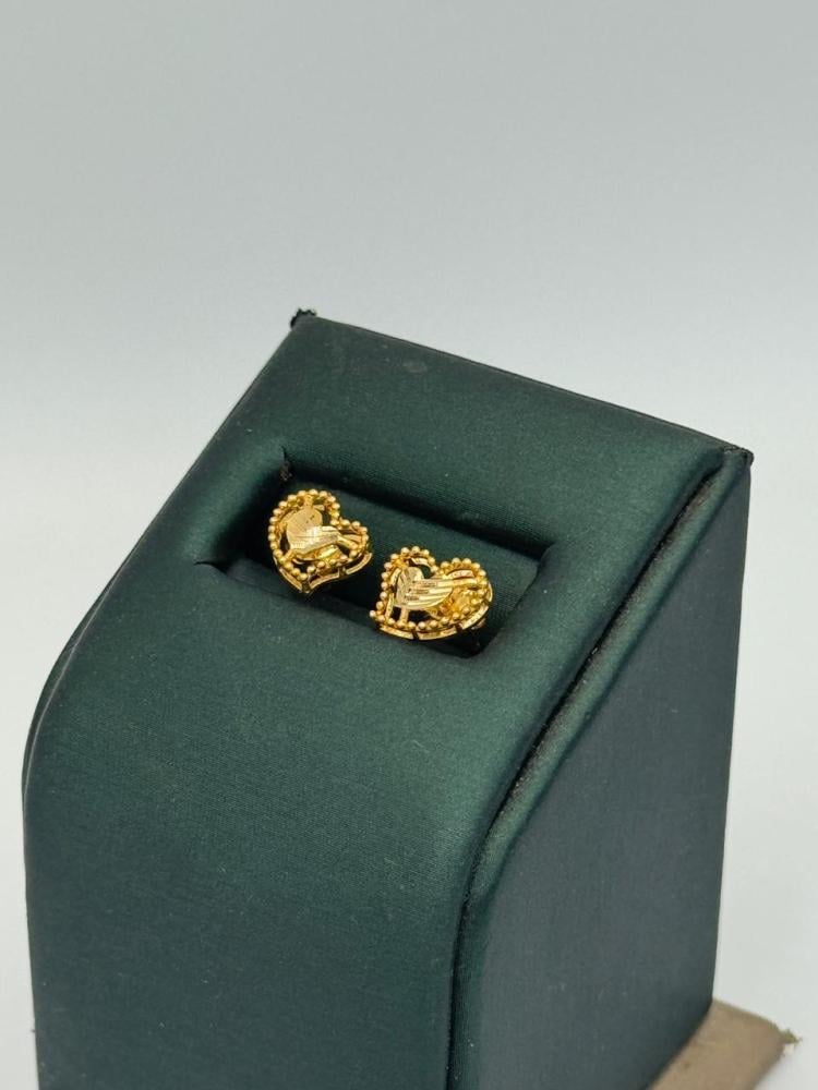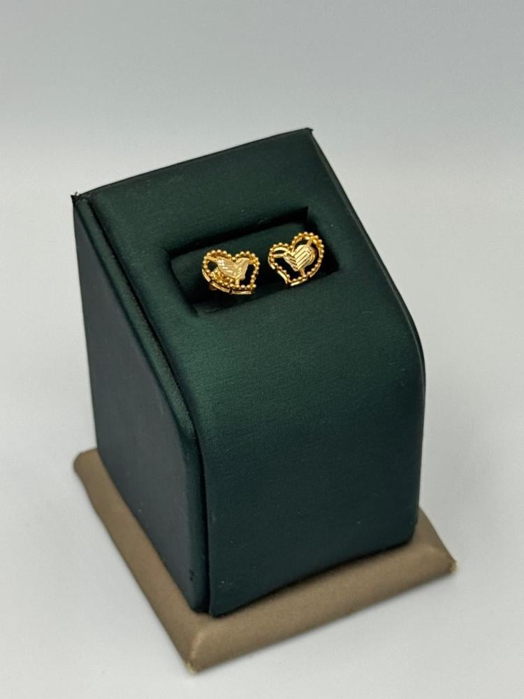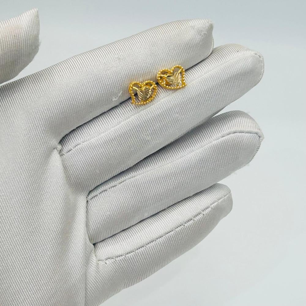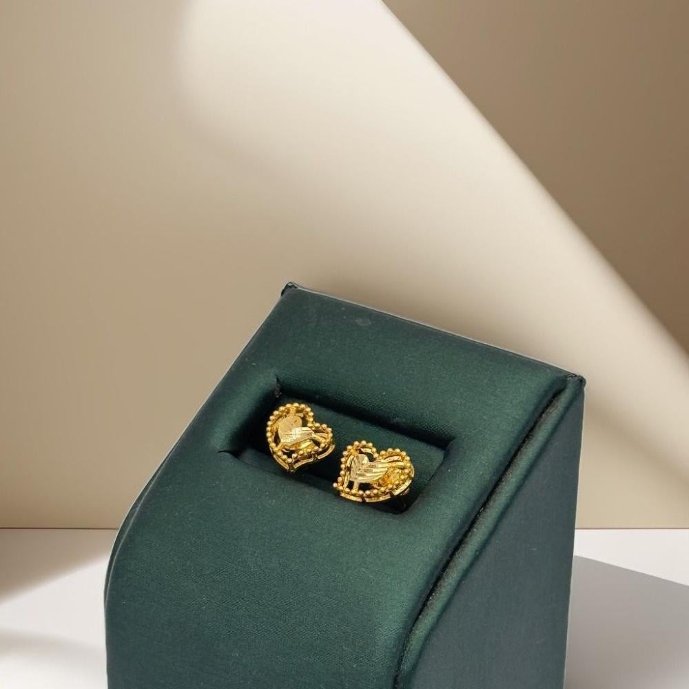 Add a touch of elegance with these 21K gold tilted heart earrings. Their unique slanted design gives a modern twist to a classic heart shape, making them perfect for any occasion. Lightweight and comfortable for all-day wear.
