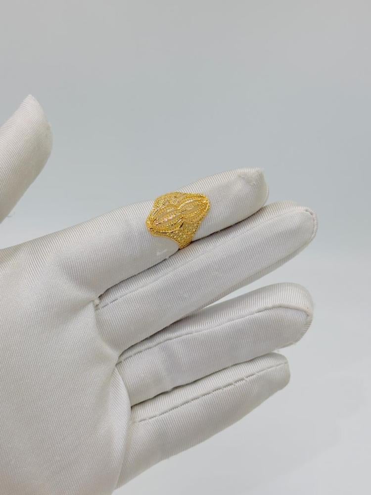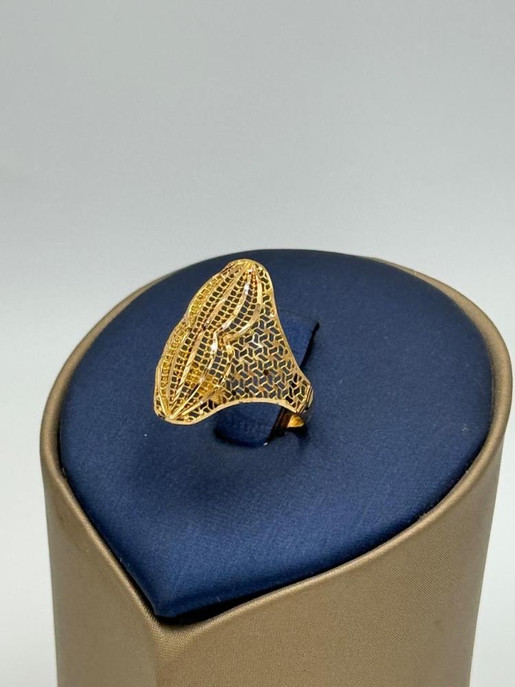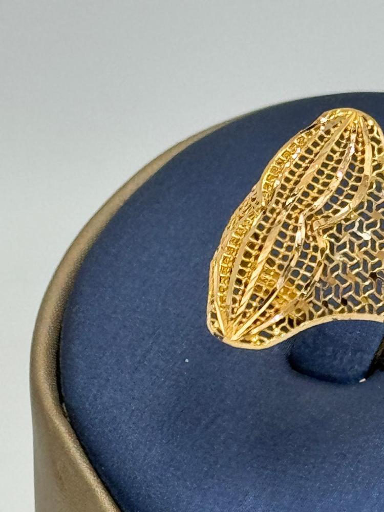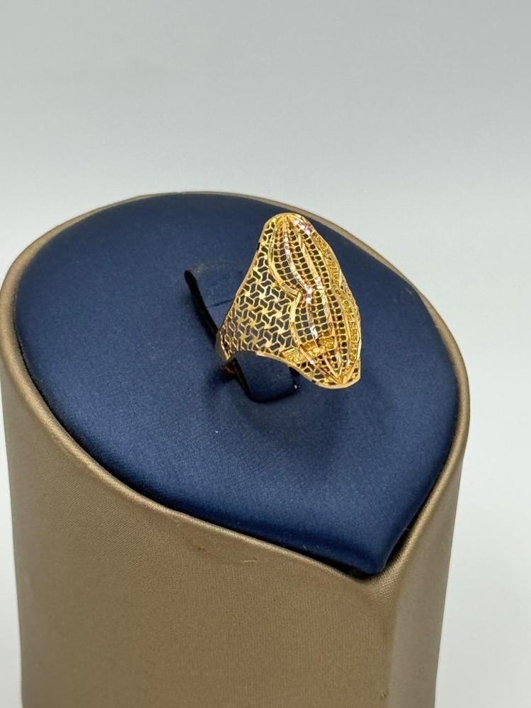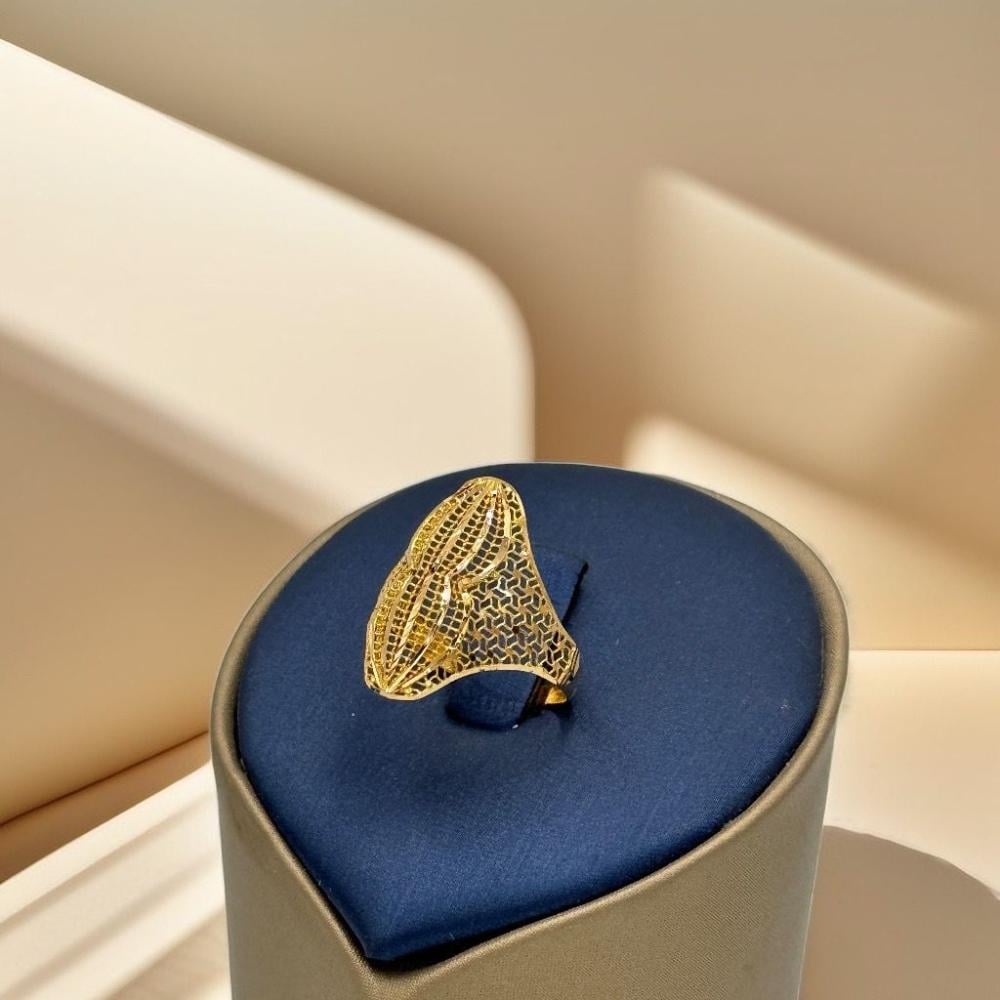 Shine with this luxurious 21K gold ring, featuring a unique design of elegant swirls and intricate engravings that add a touch of sophistication and style to your look. The ring is adjustable to ensure the perfect fit.