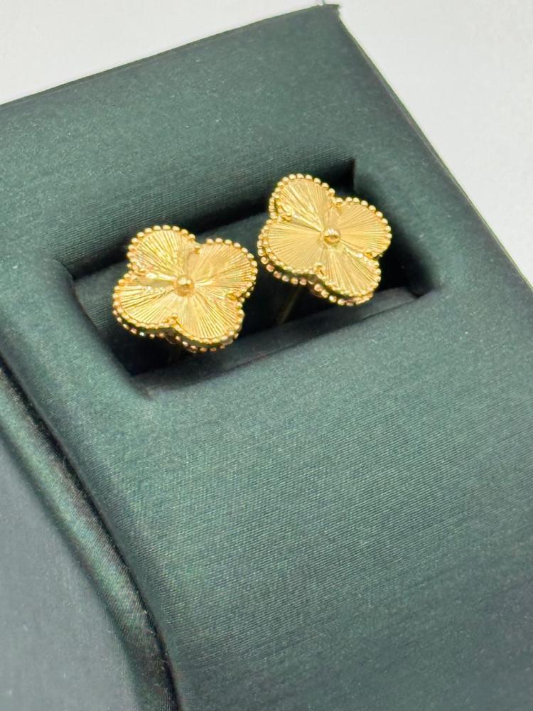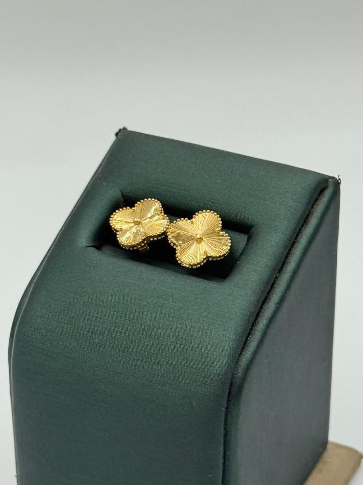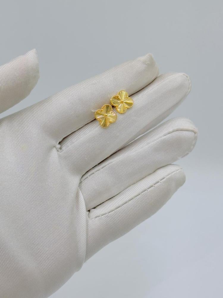 18K gold earrings with a delicate rose design, weighing 1.37 grams. A feminine piece that adds elegance and natural beauty to your everyday look or special occasions.